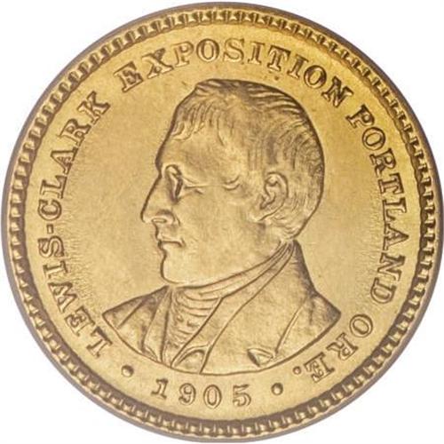 <B>1905 G$1 Lewis and Clark MS63 PCGS.</B></I> Well struck, highly lustrous, and free of noticeable marks, this is an attractive example of the Lewis and Clark commemorative gold dollar coin. This issue is somewhat scarcer than its 1904 counterpart, despite virtually identical mintages of 10,025 and 10,041 pieces, respectively. <BR><BR><b>Shipping:</b> Coins & Currency (<a target="_blank" href="http://www.heritageauctions.com/common/shipping.php">view shipping information</a>)