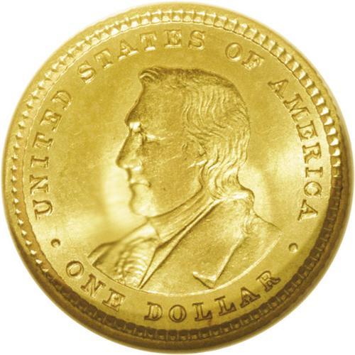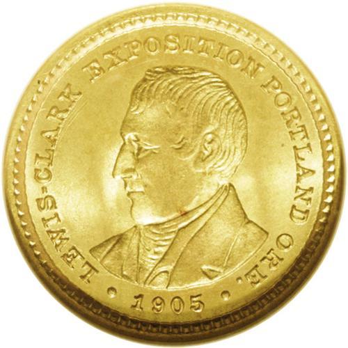 <B>1905<G$1> Lewis and Clark MS64 NGC.</B></I> Lustrous and generally light in color with minimal abrasions for the grade. Slight granularity shows about the devices and is the result of heavy metal flow, a frequent characteristic of this scarcer issue. A tiny copper spot is mentioned near the center of the obverse.