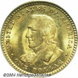 <table><tr><td><table><tr><td>1905 G$1 Lewis and Clark MS64 PCGS. This low mintage key to the commemorative gold series had only 10,041 pieces struck. This is one of the finer examples, both in terms of technical preservation as well as overall eye appeal. Close examination with a magnifier will reveal a few microscopic flaws, but these are not visible to the unaided eye and the coin presents essentially as perfect. Rich golden-orange coloration is evenly balanced over each side with somewhat deeper accents of color around the margins. <BR><BR><B>Important notice:</B> Heritage usually auctions material at the rate of 200-250 lots per hour. On some occasions eBay Live bid software or the Internet may not be able to keep up with the pace of the auction. We recommend placing a realistic absentee bid now as insurance to avoid disappointment. Occasionally the auctioneer may eliminate or reject an eBay Live bid, and the auctioneer may also reopen a lot after the close of the eBay live bidding (usually because we missed an audience bid), and may reject your bid even if it shows you as the winning bidder. By bidding via eBay Live, you agree that Heritage may award the lot to another bidder at its sole discretion under the circumstances described above or any other reasonable circumstances. Since eBay bids are not shown to us until we open the lot on the floor, we treat those bids just like floor bids. In most cases the floor responds before the eBay bid is presented to us, due to Internet lag time, so for consistency we have made it a policy that floor bids are always considered first over tie eBay live bids. Also please note that all Heritage lots purchased through eBay Live carry a 20% Buyer's Premium. Please make sure you read the Terms and Conditions before you bid. <BR><BR><B>IMPORTANT ANNOUNCEMENT ABOUT RESERVES:</B> Heritage now divulges all reserves on its web site 7 days before every auction. If you want to know whether the reserve on this lot has been met, and if not, what the reserve amount is, please visit this lot page on the HeritageCoin.com web site, or email: bid@HeritageGalleries.com </span></font></td></tr></table></td></tr></table>