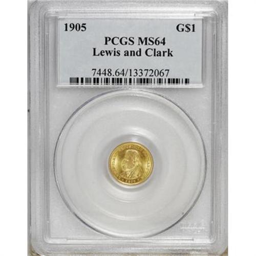<B>1905 G$1 Lewis and Clark MS64 PCGS.</B></I> An important representative from the series of 13 commemorative gold coins produced by the Mint between 1903 and 1926. The Lewis and Clark gold dollars are elusive, and always collector favorites. This piece is fully brilliant and highly lustrous with deep orange-gold surfaces.<BR><BR><b>Shipping:</b> Coins & Currency (<a target="_blank" href="http://www.heritageauctions.com/common/shipping.php">view shipping information</a>)
