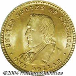 <table><tr><td><table><tr><td>1905 G$1 Lewis and Clark MS65 PCGS. Both sides of this high quality Lewis and Clark Gold Dollar exhibit a deep, satiny brilliance with intermittent streaks of steel-blue patina. What appears to be a short cut behind Lewis' neck is actually the result of a piece of foreign matter on the dies. This year marks the 200th anniversary of the "westward journey", lending even greater importance to these scarce gold commemoratives. <BR><BR><B>Important notice:</B> Heritage usually auctions material at the rate of 200-250 lots per hour. On some occasions eBay Live bid software or the Internet may not be able to keep up with the pace of the auction. We recommend placing a realistic absentee bid now as insurance to avoid disappointment. Occasionally the auctioneer may eliminate or reject an eBay Live bid, and the auctioneer may also reopen a lot after the close of the eBay live bidding (usually because we missed an audience bid), and may reject your bid even if it shows you as the winning bidder. By bidding via eBay Live, you agree that Heritage may award the lot to another bidder at its sole discretion under the circumstances described above or any other reasonable circumstances. Since eBay bids are not shown to us until we open the lot on the floor, we treat those bids just like floor bids. In most cases the floor responds before the eBay bid is presented to us, due to Internet lag time, so for consistency we have made it a policy that floor bids are always considered first over tie eBay live bids. Also please note that all Heritage lots purchased through eBay Live carry a 20% Buyer's Premium. Please make sure you read the Terms and Conditions before you bid. <BR><BR><B>IMPORTANT ANNOUNCEMENT ABOUT RESERVES:</B> Heritage now divulges all reserves on its web site 7 days before every auction. If you want to know whether the reserve on this lot has been met, and if not, what the reserve amount is, please visit this lot page on the HeritageCoin.com web site, or email: bid@HeritageGalleries.com </span></font></td></tr></table></td></tr></table>