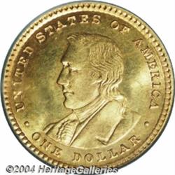 <table><tr><td><TABLE cellSpacing=0 cellPadding=0 width="100%" bgColor=#000000 border=0><TBODY> <TR><TD width="100%"><TABLE cellSpacing=1 cellPadding=3 width="100%" border=0><TBODY><TR><TD width="100%" bgColor=#79735c><FONT face=arial color=#ffffff size=3><B>Description</B> </FONT></TD></TR><TR><TD width="100%" bgColor=#ffffff><FONT face=arial size=2><B>1905 G$1 Lewis and Clark MS65 PCGS.</B></I> The 1905 Lewis and Clark is scarcer than its 1904 counterpart, and in fact, is the key to the small gold commemorative series. Only rarely do we have the privilege of offering a Gem example of this scarce issue. This piece has smooth, lustrous surfaces that are virtually flawless, with no obvious abrasions on either side, and beautiful orange-gold color throughout. </FONT></TD></TR></TBODY></TABLE></TD></TR></TBODY></TABLE><BR><A name=PricesRealized></A><TABLE cellSpacing=0 cellPadding=0 width="100%" bgColor=#000000 border=0><TBODY><TR><TD width="100%"><TABLE cellSpacing=1 cellPadding=3 width="100%" border=0><TBODY><TR><TD width="100%" bgColor=#79735c><A name=PR><FONT face=arial color=#ffffff size=3><B>Previous Prices from Heritage Auctions</B> </FONT></A></TD></TR><TR><TD bgColor=#f6f6ed><TABLE cellSpacing=0 cellPadding=0 width="100%" border=1><TBODY><TR><TD align=middle width="33%"><B>Date</B></TD><TD align=middle width="33%"><B>Service</B></TD><TD align=middle width="33%"><B>Price</B></TD></TR><TR bgColor=whitesmoke><TD width="33%"><B>09/24/1999</B></TD><TD width="33%">PCGS</TD><TD width="33%">$14,375.00</TD></TR><TR bgColor=whitesmoke><TD width="33%"><B>06/06/1998</B></TD><TD width="33%">PCGS</TD><TD width="33%">$10,062.50</TD></TR><TR bgColor=whitesmoke><TD width="33%"><B>02/24/1995</B></TD><TD width="33%">PCGS</TD><TD width="33%">$11,000.00</TD></TR><TR bgColor=whitesmoke><TD width="33%"><B>01/06/1993</B></TD><TD width="33%">ANACS</TD><TD width="33%">$9,020.00</TD></TR></TBODY></TABLE></TD></TR><TR><TD bgColor=#ffffff><FONT face=arial size=1 ?>PLEASE NOTE: All prices realized reflect the final hammer price PLUS the buyer's premium in auctions that charge a buyer's premium. Each item has a notation at the top of the listing indicating whether that lot included a buyer's premium. Example: A item that sells with a final hammer price of $100 and a 20% buyer's premium will display with a price realized of $120. All information listed is intended to be as accurate as possible, but errors are possible. Please use this guide carefully and inform us of any inaccuracies. </FONT></TD></TR></TBODY></TABLE></TD></TR></TBODY></TABLE><BR><TABLE cellSpacing=0 cellPadding=0 width="100%" bgColor=#000000 border=0><TBODY><TR><TD width="100%"><TABLE cellSpacing=1 cellPadding=3 width="100%" border=0><TBODY><TR><TD width="100%" bgColor=#79735c colSpan=6><FONT face=arial color=#ffffff size=3><B>Price Guide*</B> </FONT></TD></TR><TR bgColor=#f6f6ed><TD align=middle><B>Grade</B> </TD><TD align=middle><B>Coin World<BR>(Trends)</B> </TD><TD align=middle><B>Numismedia<BR>Retail</B> </TD><TD align=middle><B>Numismedia<BR>Wholesale</B> </TD><TD align=middle><B>Coin<BR>Universe</B> </TD><TD align=middle><B>Heritage<BR>Value Index</B> </TD></TR><TR bgColor=#ffffff><TD align=middle>64</TD><TD align=right>$7,000.00</TD><TD align=right>---</TD><TD align=right>$4,750.00</TD><TD align=right>$5,500.00</TD><TD align=right>$4,525.00</TD></TR><TR style="FONT-WEIGHT: bold" bgColor=#cccfdd><TD align=middle>65</TD><TD align=right>$20,000.00</TD><TD align=right>---</TD><TD align=right>$9,575.00</TD><TD align=right>$13,500.00</TD><TD align=right>$11,312.50</TD></TR><TR bgColor=#ffffff><TD align=middle>66</TD><TD align=right>$30,000.00</TD><TD align=right>---</TD><TD align=right>$22,500.00</TD><TD align=right>$28,000.00</TD><TD align=right>$19,925.00</TD></TR><TR bgColor=#ffffff><TD colSpan=6><FONT size=1>*All information listed is intended to be as accurate as possible, but errors are possible. No item may be returned or refused based on this information which is provided as a service to our customers. You should contact each pricing source directly to determine the accuracy of this information. </FONT></TD></TR></TBODY></TABLE></TD></TR></TBODY></TABLE><BR><TABLE cellSpacing=0 cellPadding=0 width="100%" bgColor=#000000 border=0><TBODY><TR><TD width="100%"><TABLE cellSpacing=1 cellPadding=3 width="100%" border=0><TBODY><TR><TD width="100%" bgColor=#79735c><FONT face=arial color=#ffffff size=3><B>Population Guide</B> </FONT></TD></TR><TR bgColor=#ffffff><TD align=middle><!-- Begin Output of Population Grid--><TABLE cellSpacing=0 cellPadding=0 width="100%" border=0><TBODY><TR><TD vAlign=center><TABLE cellSpacing=0 width="100%" border=1 cellsadding="3"><TBODY><TR><TD vAlign=center><TABLE cellSpacing=0 cellPadding=3 width="100%" border=1><TBODY><TR><TD vAlign=center align=middle bgColor=#f0f1e8 colSpan=2 <CENTER><FONT face=Arial size=2><B>PCGS Pop </B></FONT><CENTER></CENTER></TD><TD vAlign=center align=middle bgColor=#f0f1e8 colSpan=2><CENTER><FONT face=Arial size=2><B>NGC Pop</B></CENTER></FONT></TD></TR><TR><TD vAlign=center><FONT face=Arial size=2>(65)</FONT> </TD><TD vAlign=center align=right><FONT face=Arial size=2>164</FONT> </TD><TD vAlign=center><FONT face=Arial size=2>(65)</FONT> </TD><TD vAlign=center align=right><FONT face=Arial size=2>88</FONT> </TD></TR><TR><TD vAlign=center><FONT face=Arial size=2>(>65)</FONT> </TD><TD vAlign=center align=right><FONT face=Arial size=2>55</FONT> </TD><TD vAlign=center><FONT face=Arial size=2>(>65)</FONT> </TD><TD vAlign=center align=right><FONT face=Arial size=2>34</FONT> </TD></TR></TBODY></TABLE></TD></TR></TBODY></TABLE></TD></TR></TBODY></TABLE><!-- End Output of Population Grid--></TD></TR></TBODY></TABLE></TD></TR></TBODY></TABLE><BR><TABLE cellSpacing=0 cellPadding=0 width="100%" bgColor=#000000 border=0><TBODY><TR> <font color='#000000'><span style='background-color: #FFFFFF'><td bgcolor='#FFFFFE'> Important notice: Heritage usually auctions material at the rate of 200-250 lots per ho