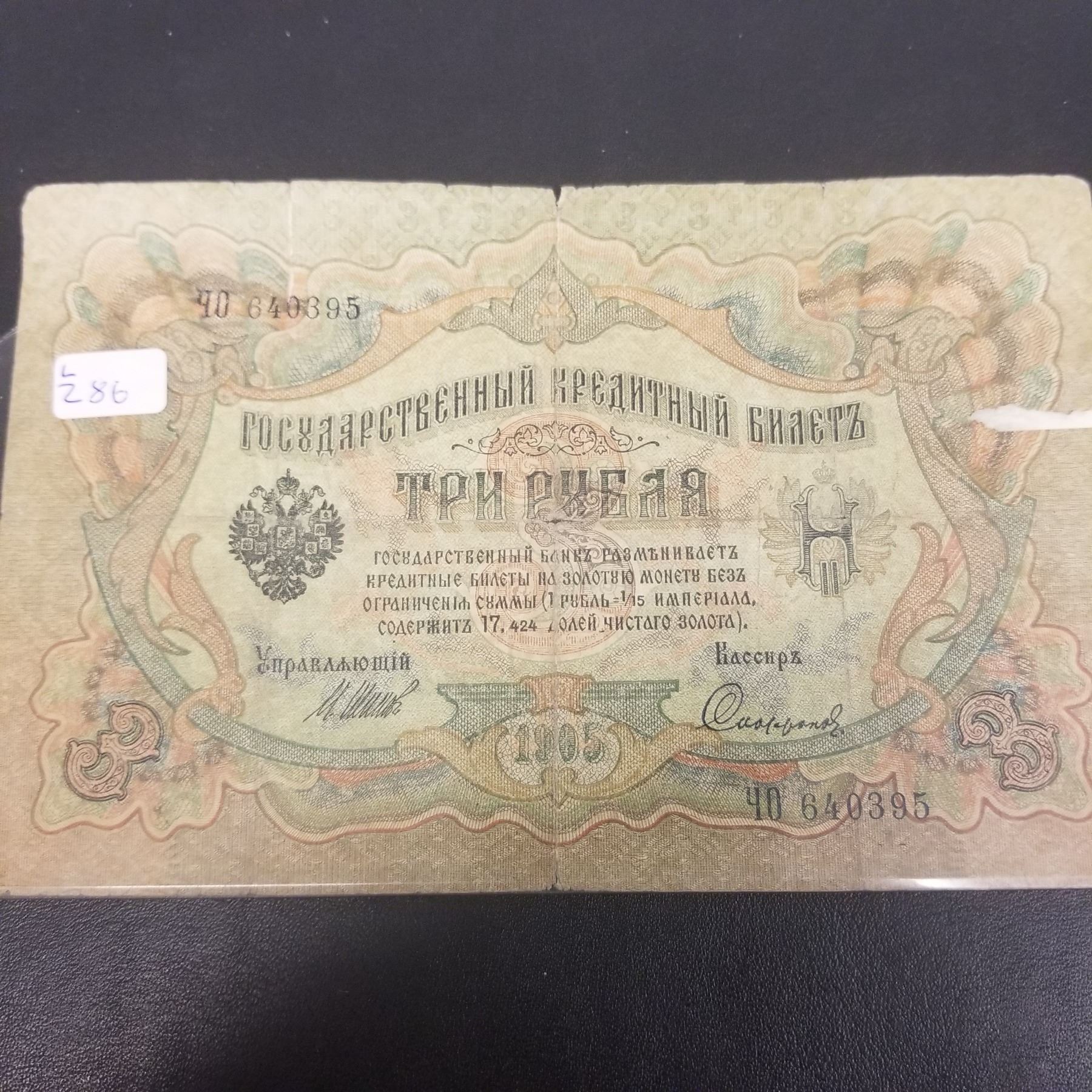 1905 Imperial Russia 3 Rouble note Czar Nicholes Some tears has been folded