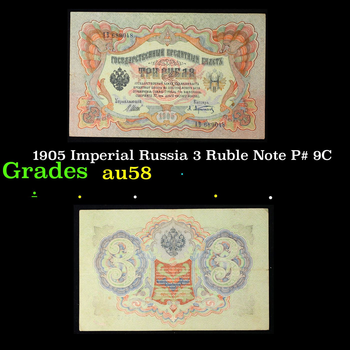 1905 Imperial Russia 3 Ruble Note P# 9C Grades Choice AU/BU Slider.