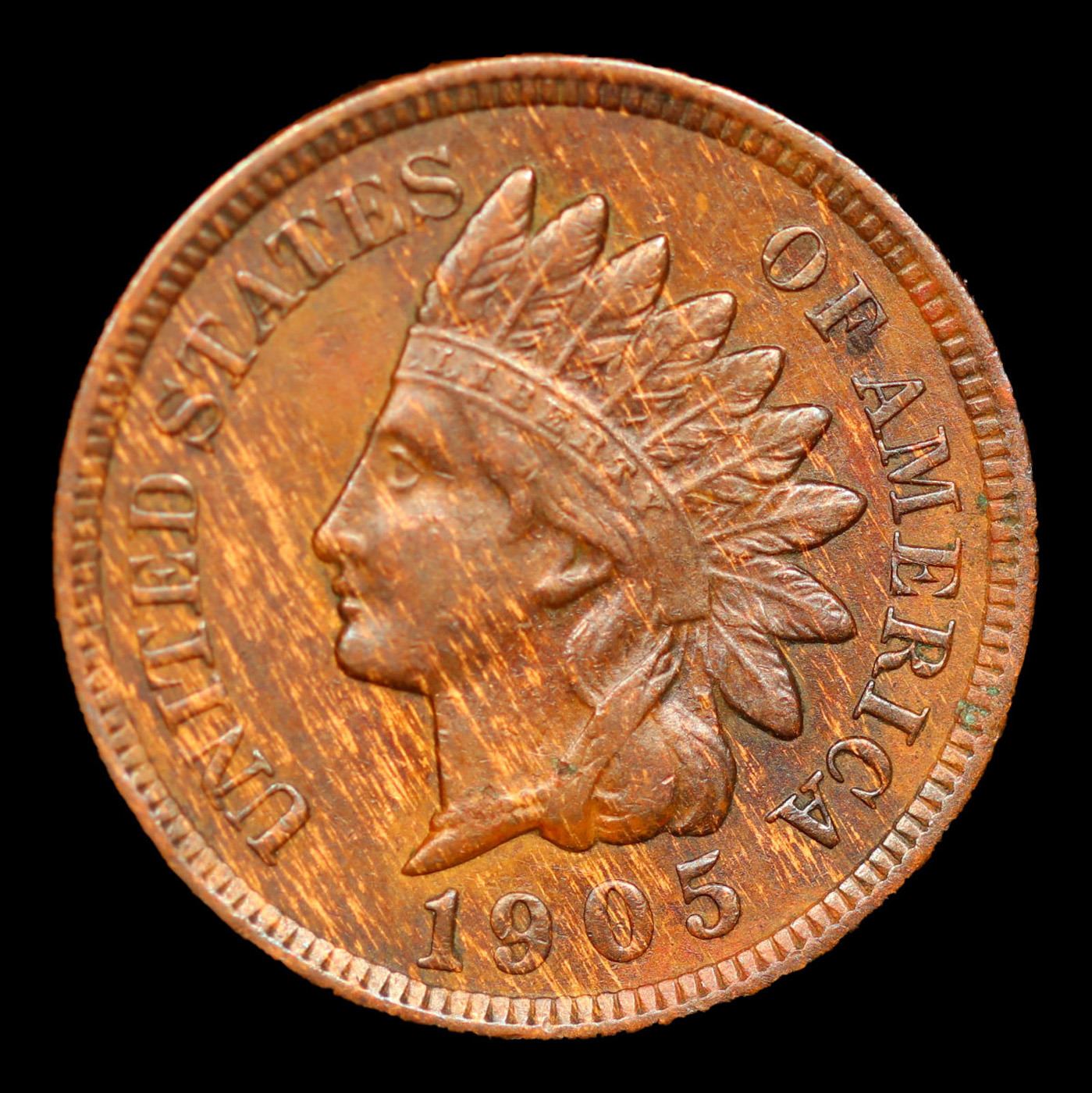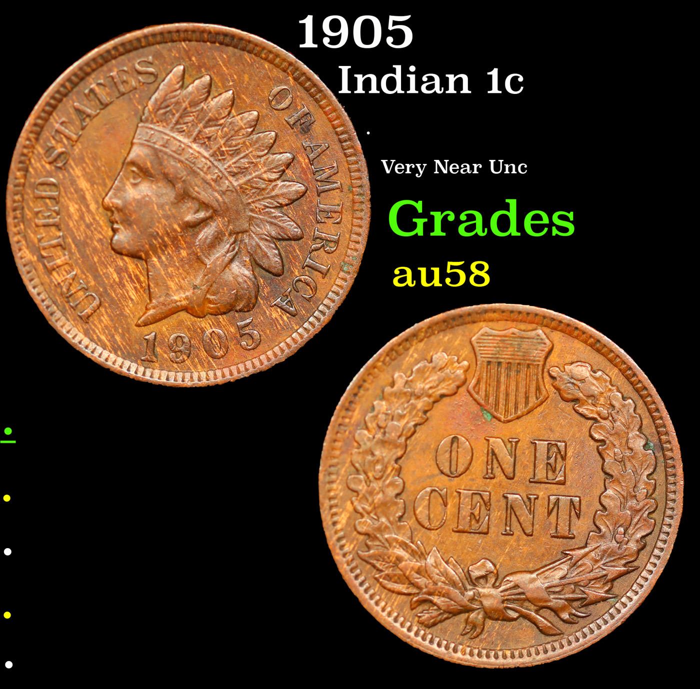 1905 Indian Cent 1c Grades Choice AU/BU Slider.