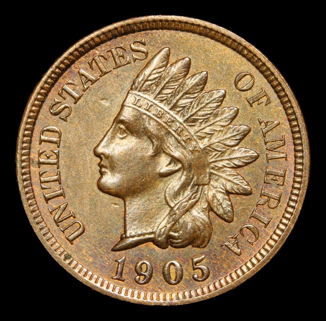 1905 Indian Cent 1c Grades Choice+ Unc BN. Lots of red peaking through; Beautiful patina
