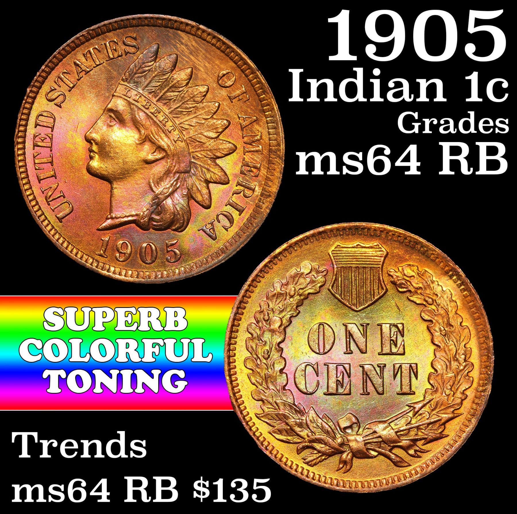 1905 Indian Cent 1c Grades Choice Unc RB.