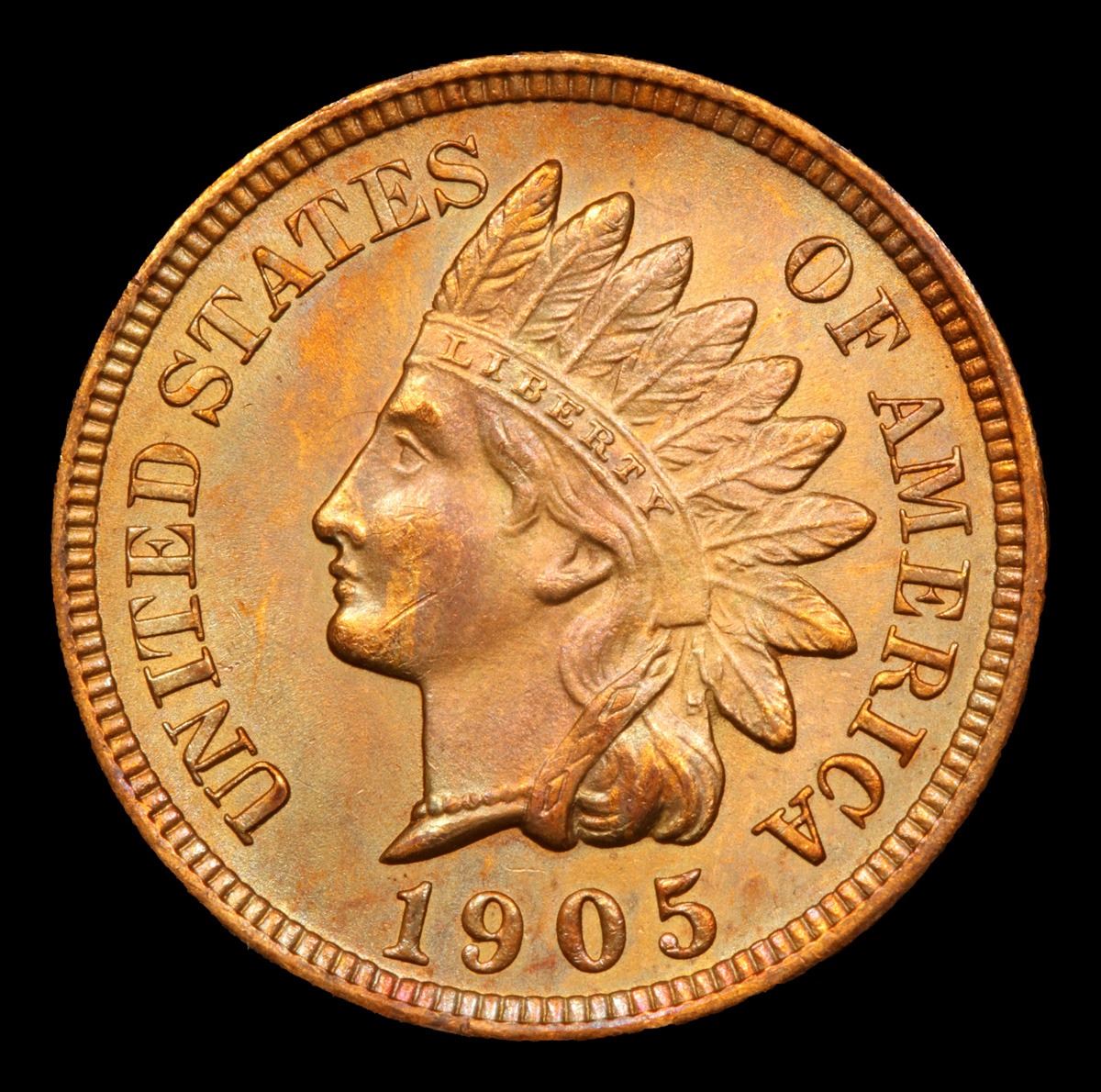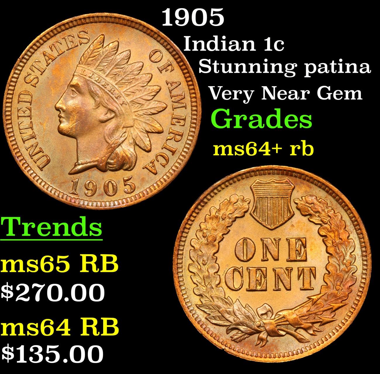1905 Stunning patina Very Near Gem Indian Cent 1c Grades Choice+ Unc RB.