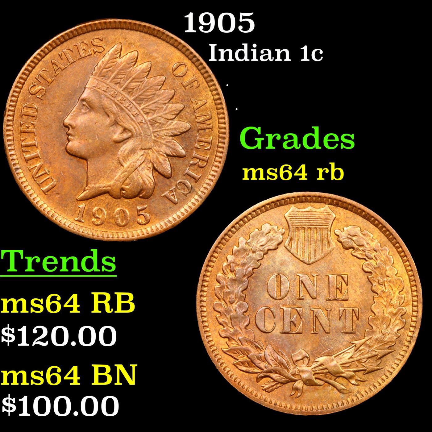 1905 Indian Cent 1c Grades Choice Unc RB.