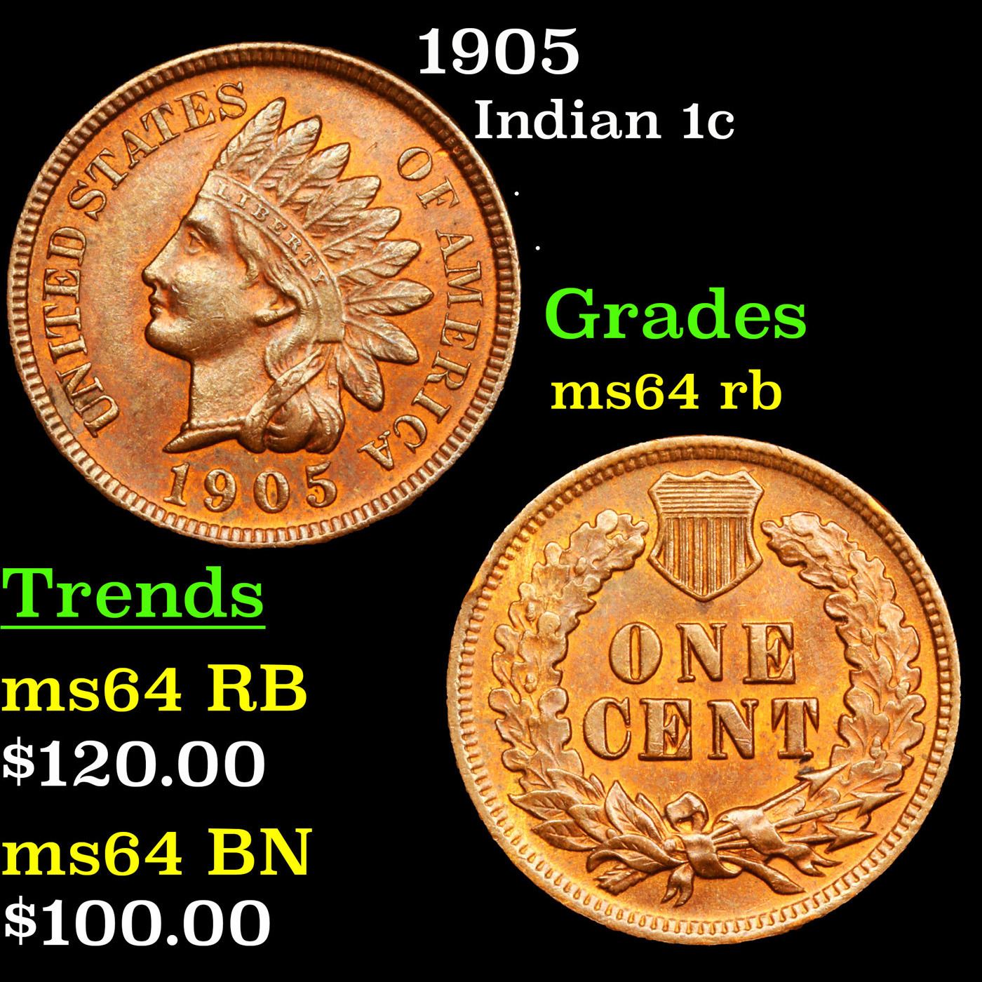 1905 Indian Cent 1c Grades Choice Unc RB.