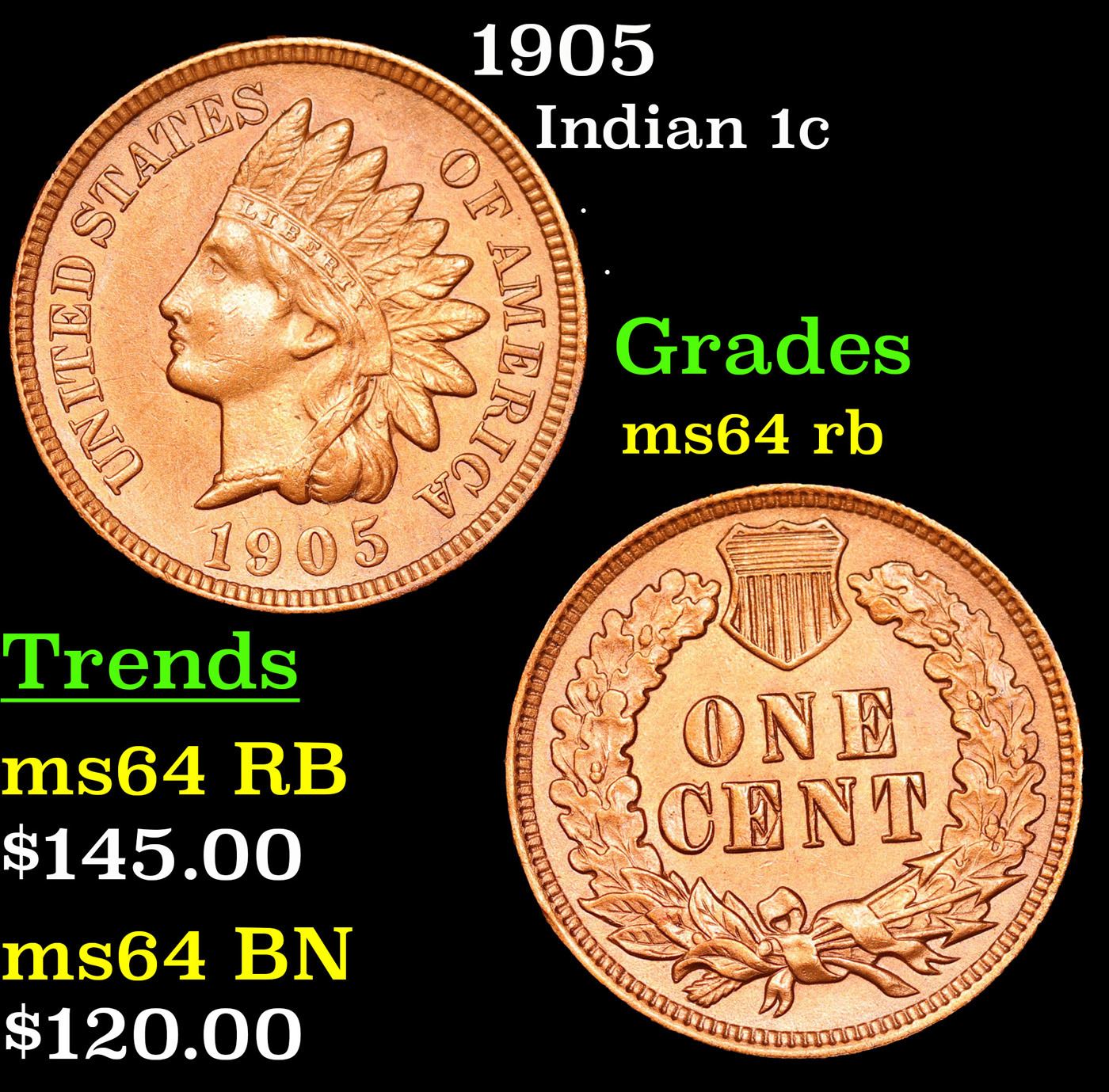 1905 Indian Cent 1c Grades Choice Unc RB.