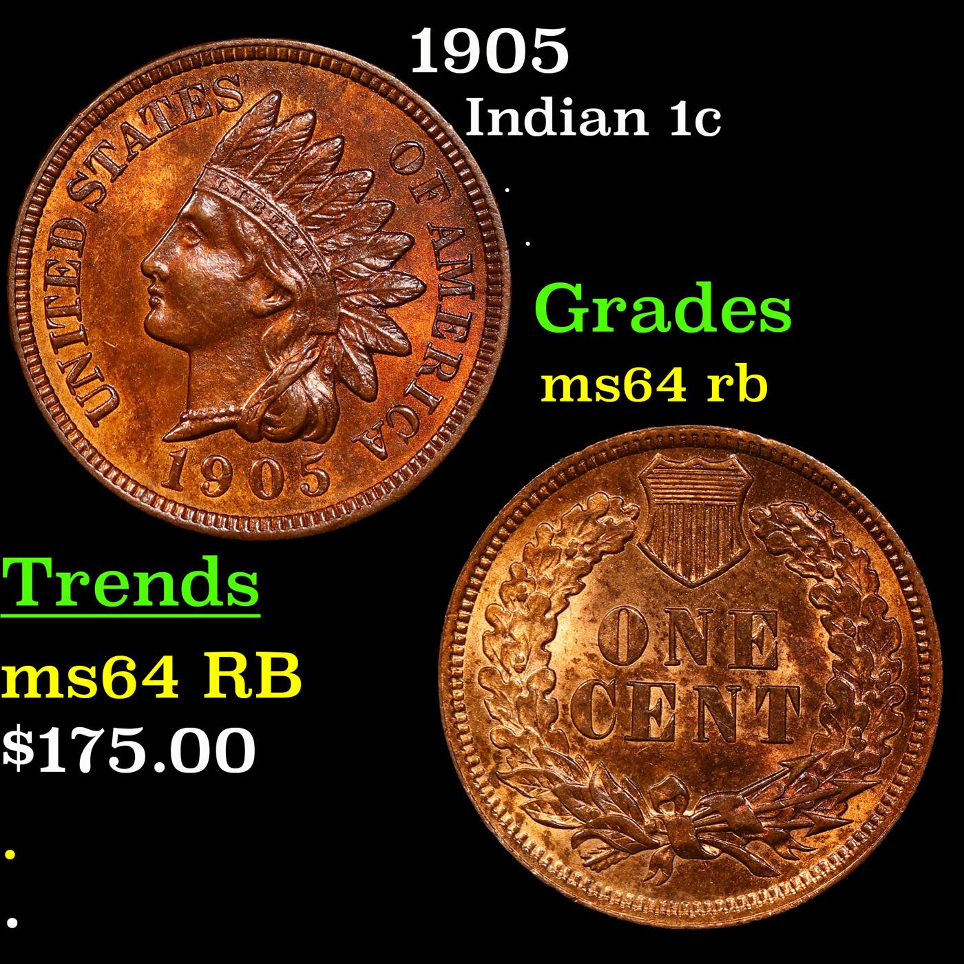 1905 Indian Cent 1c Grades Choice Unc RB.