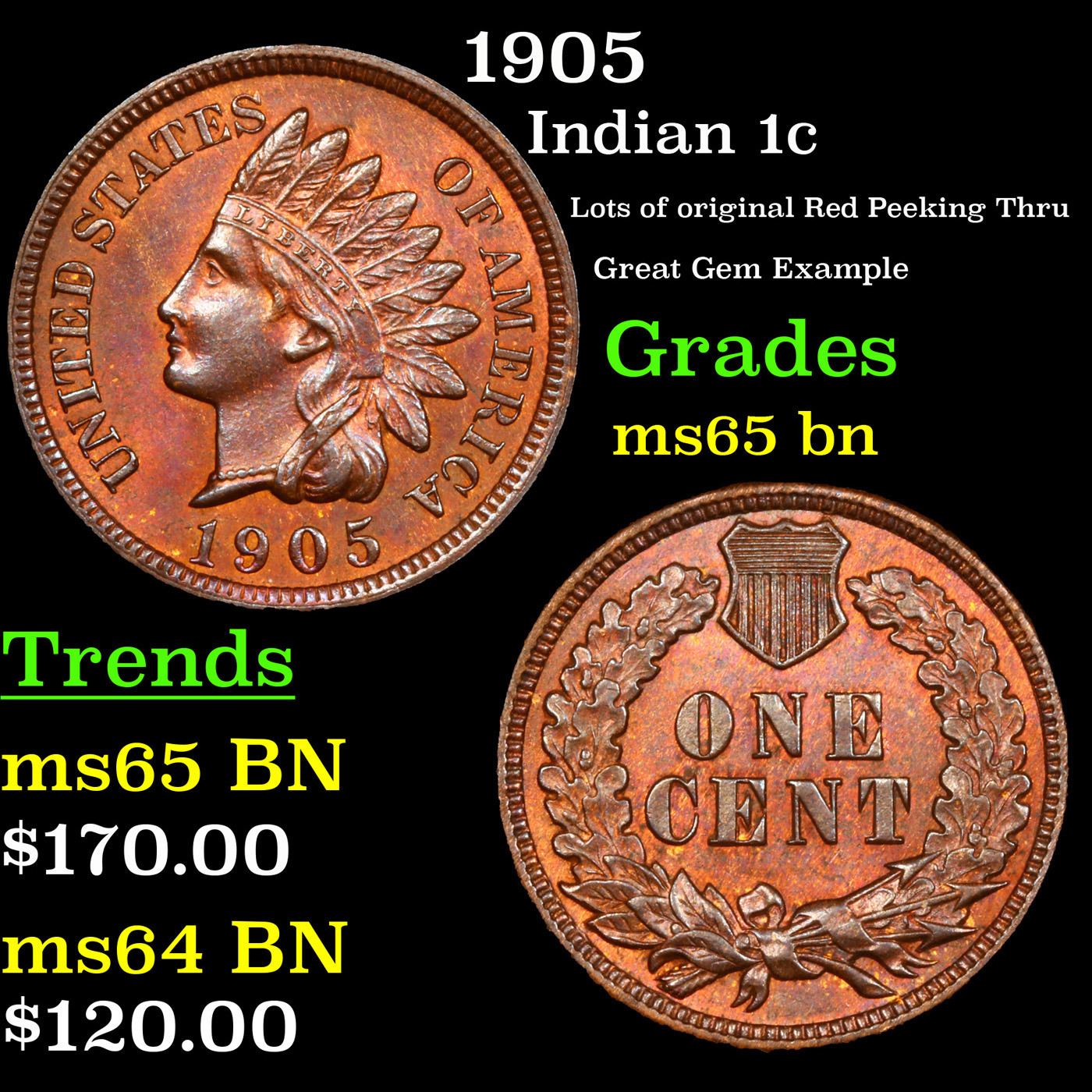 1905 Indian Cent 1c Grades GEM Unc BN.