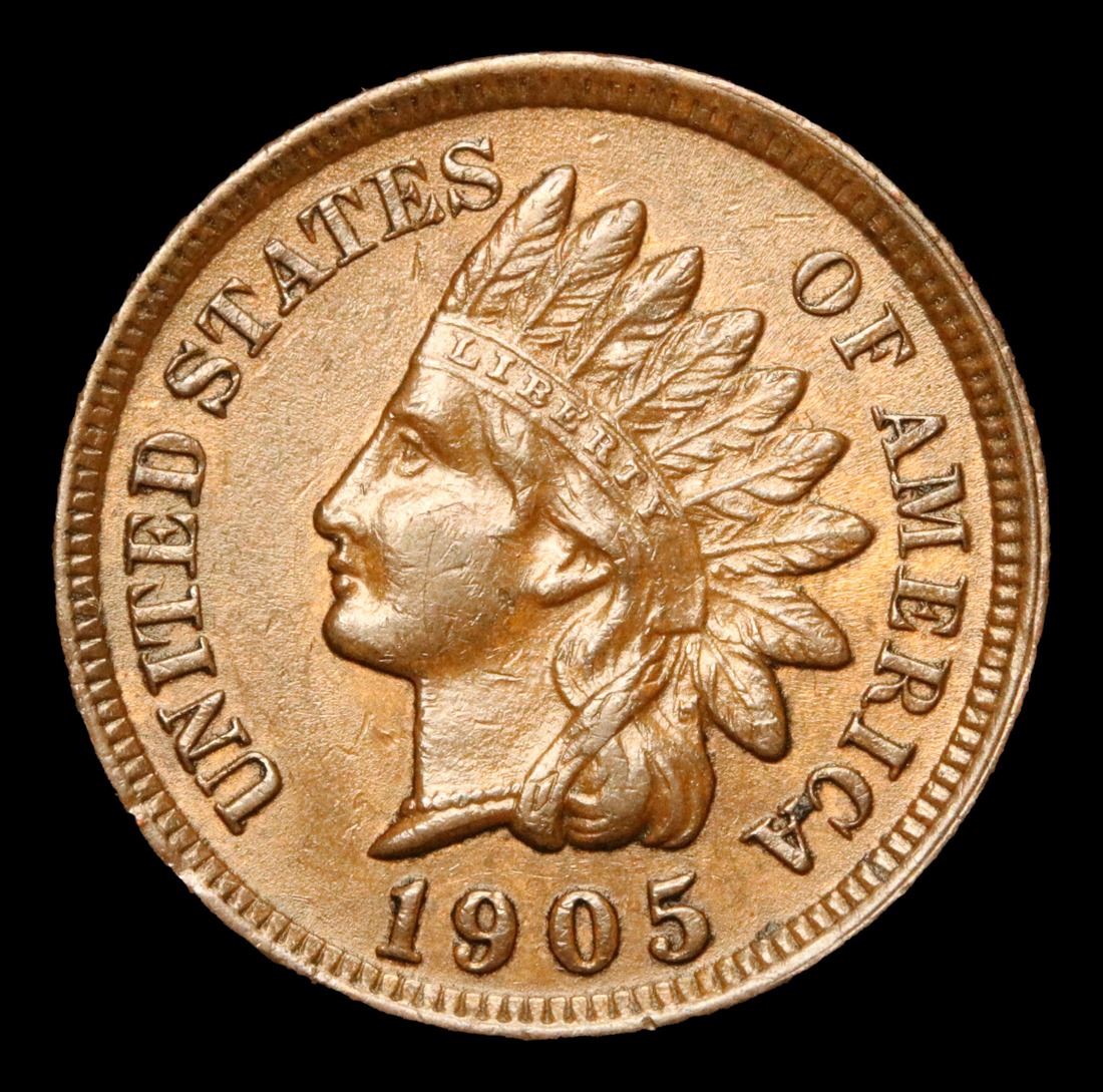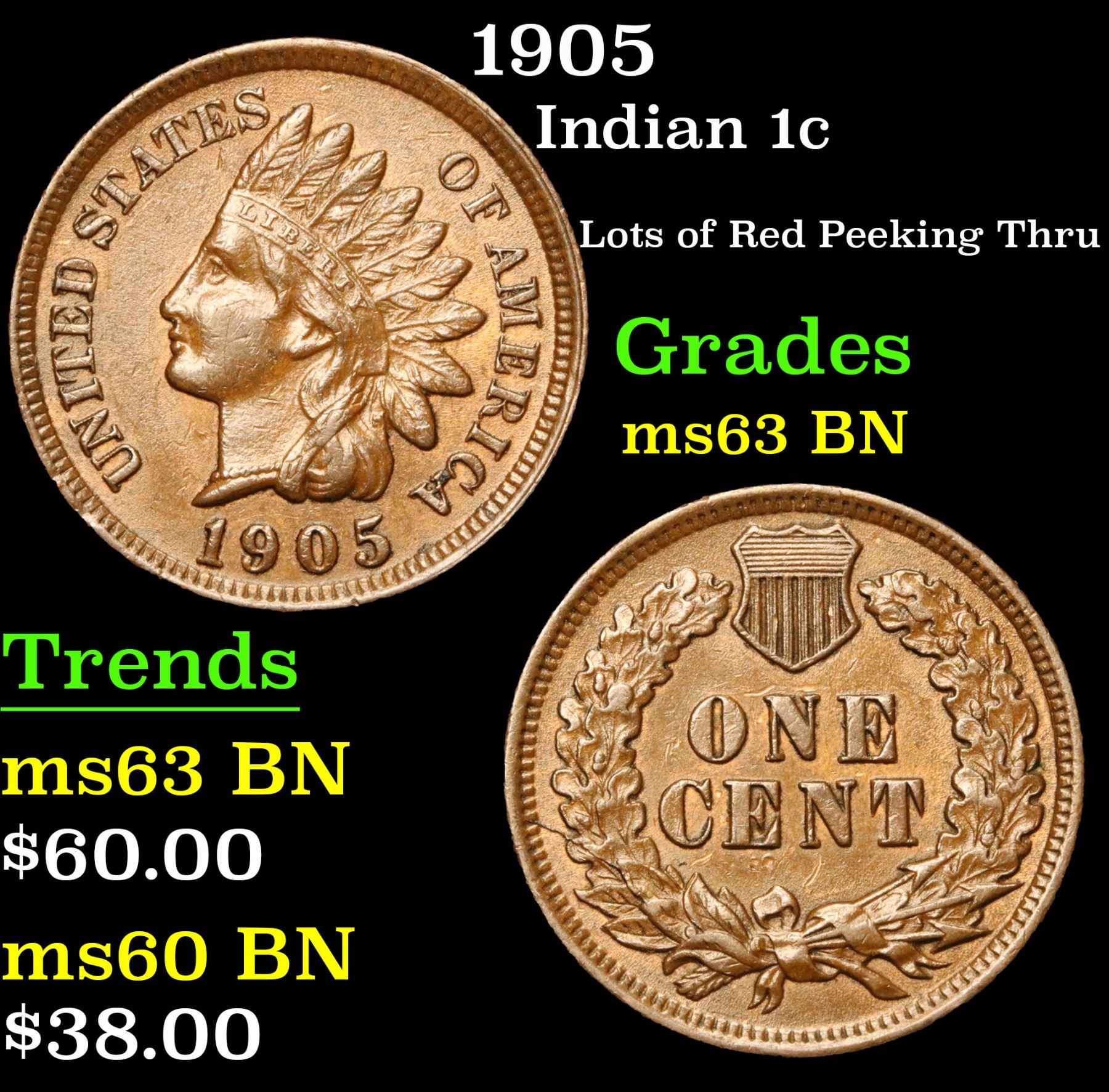 1905 Indian Cent 1c Grades Select Unc BN. Lots of Red Peeking Thru; .