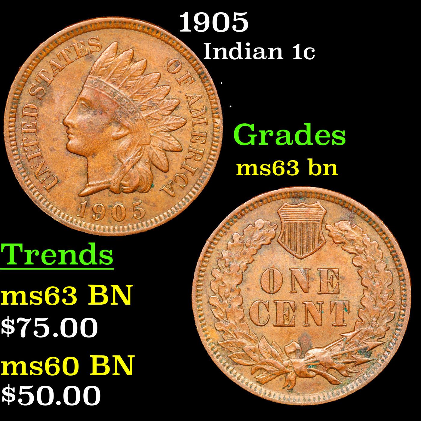 1905 Indian Cent 1c Grades Select Unc BN.