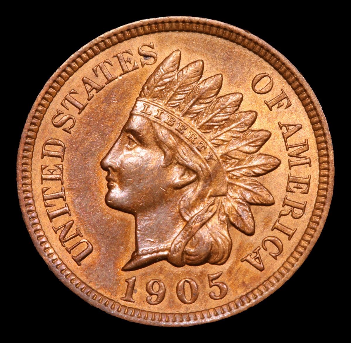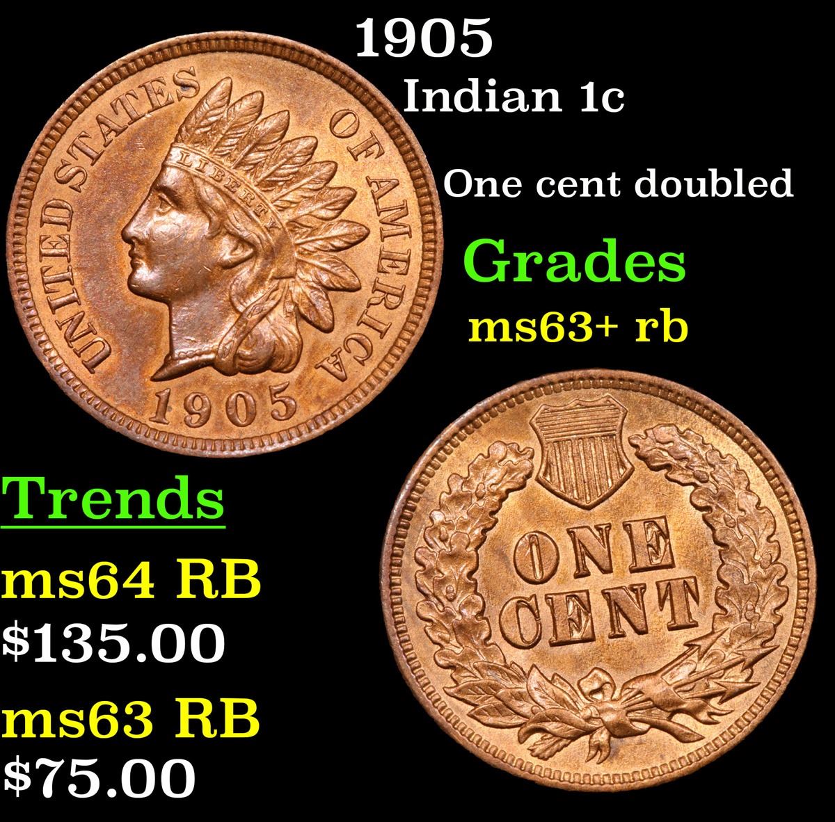 1905 One cent doubled . Indian Cent 1c Grades Select+ Unc RB.