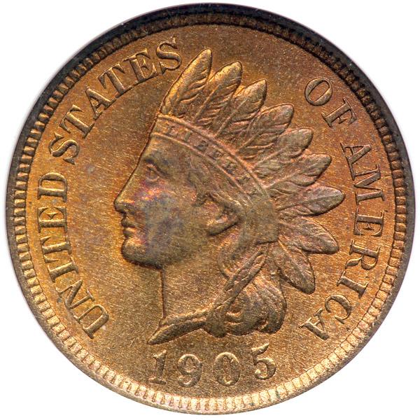 1905 Indian Head Cent. NGC graded MS-66 Red & Brown.
