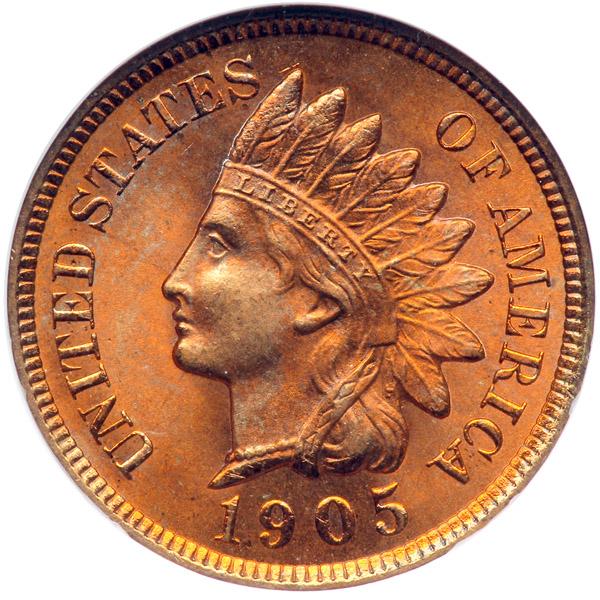 1905. NGC graded MS-66 Red. A gorgeous full Mint Red example blazing with color. Pop 56; 4 in 67 RD.