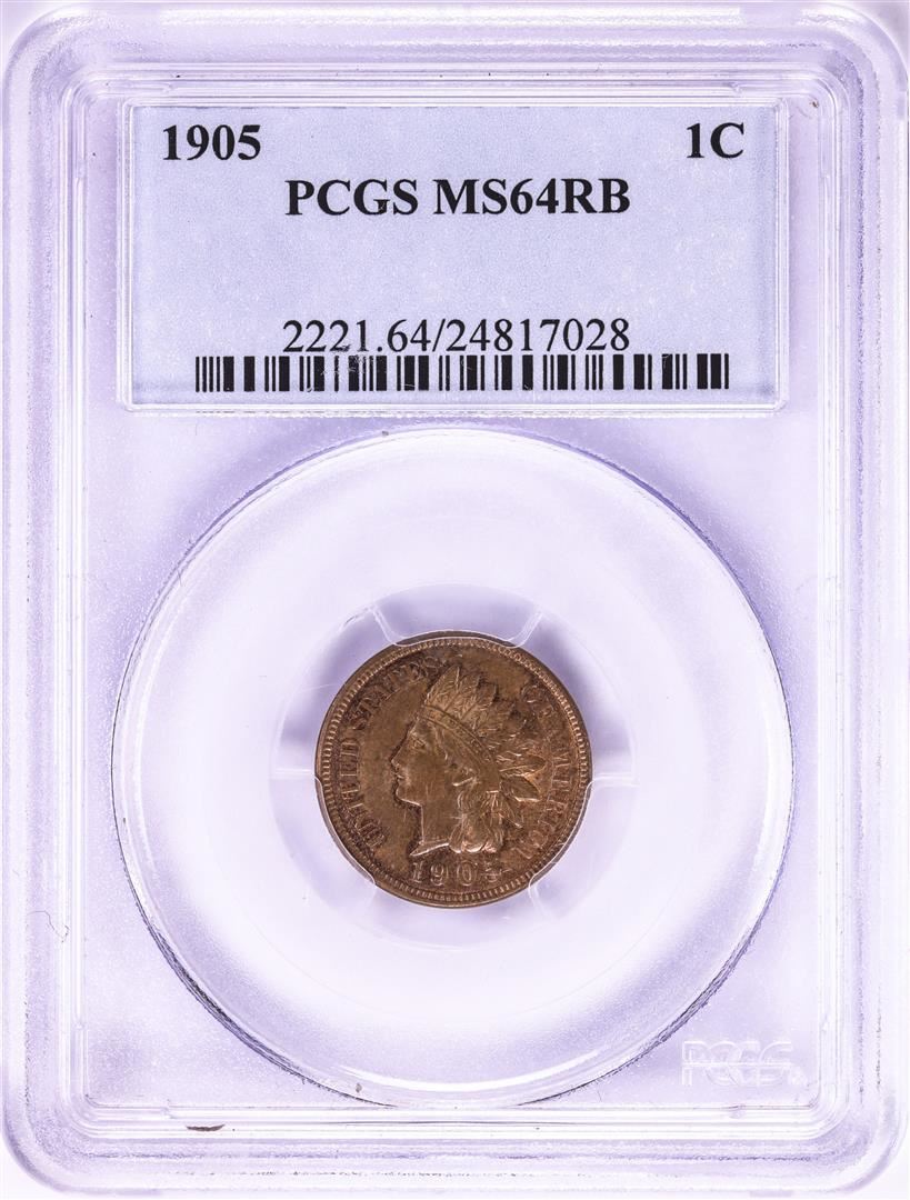 One 1905 Indian Head Cent Coin PCGS MS64RB. PCGS Graded.