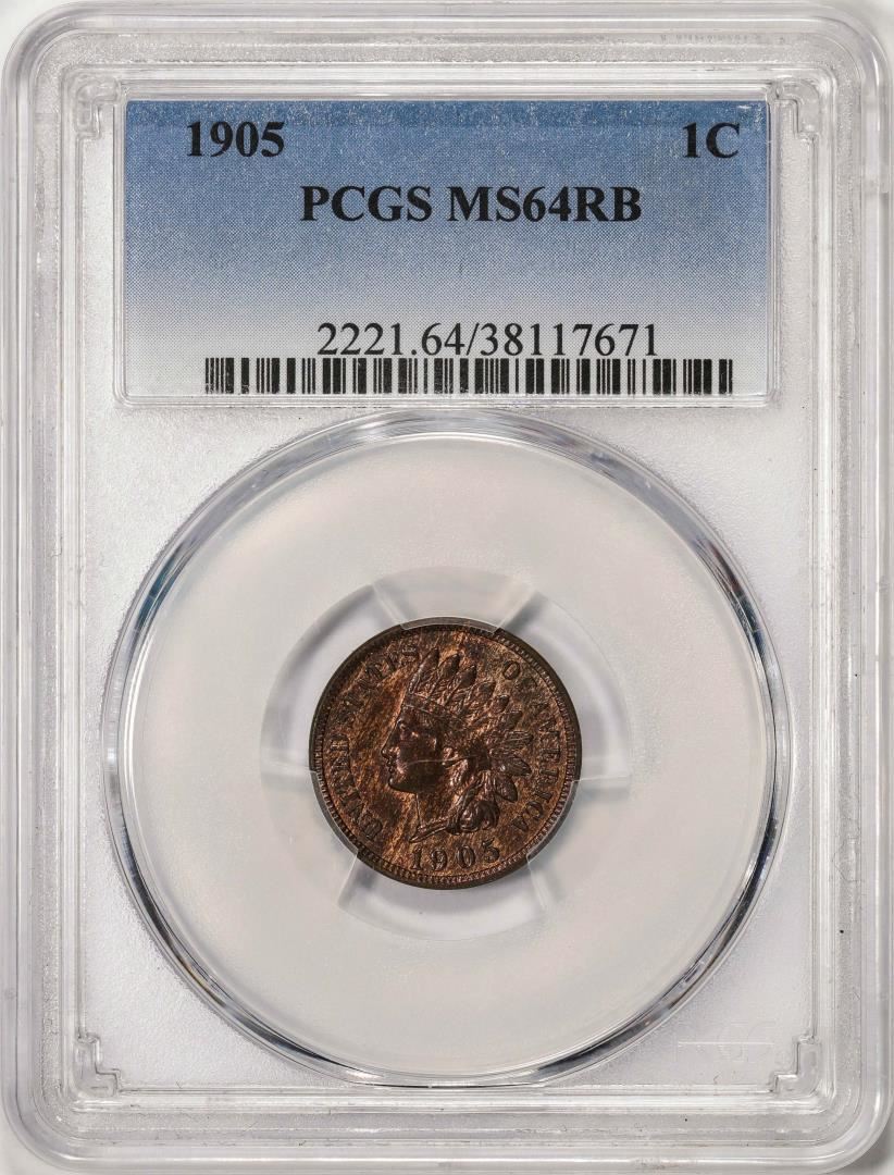 One 1905 Indian Head Cent Coin PCGS MS64RB. PCGS Graded.