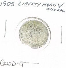 1905 LIBERTY HEAD "V" NICKEL *GOOD-4 GRADE*!! ***Coin, Currency & All Items Listed in this auction - Grades, Conditions and Values are not Safe Deposit Coins LLC Responsibilty. Grades, Condition and Values are determined by Consigner(s) & Buyers ONLY***