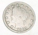 1905 LIBERTY "V" NICKEL RED BOOK VALUE IS $10.00+ *NICE EARLY FINE GRADE*!! LIBERTY NICKEL CAME OUT OF SAFE!! ***Coin, Currency & All Items Listed in this auction - Grades, Conditions and Values are not Safe Deposit Coins LLC Responsibilty. Grades, Condition and Values are determined by Consigner(s) & Buyers