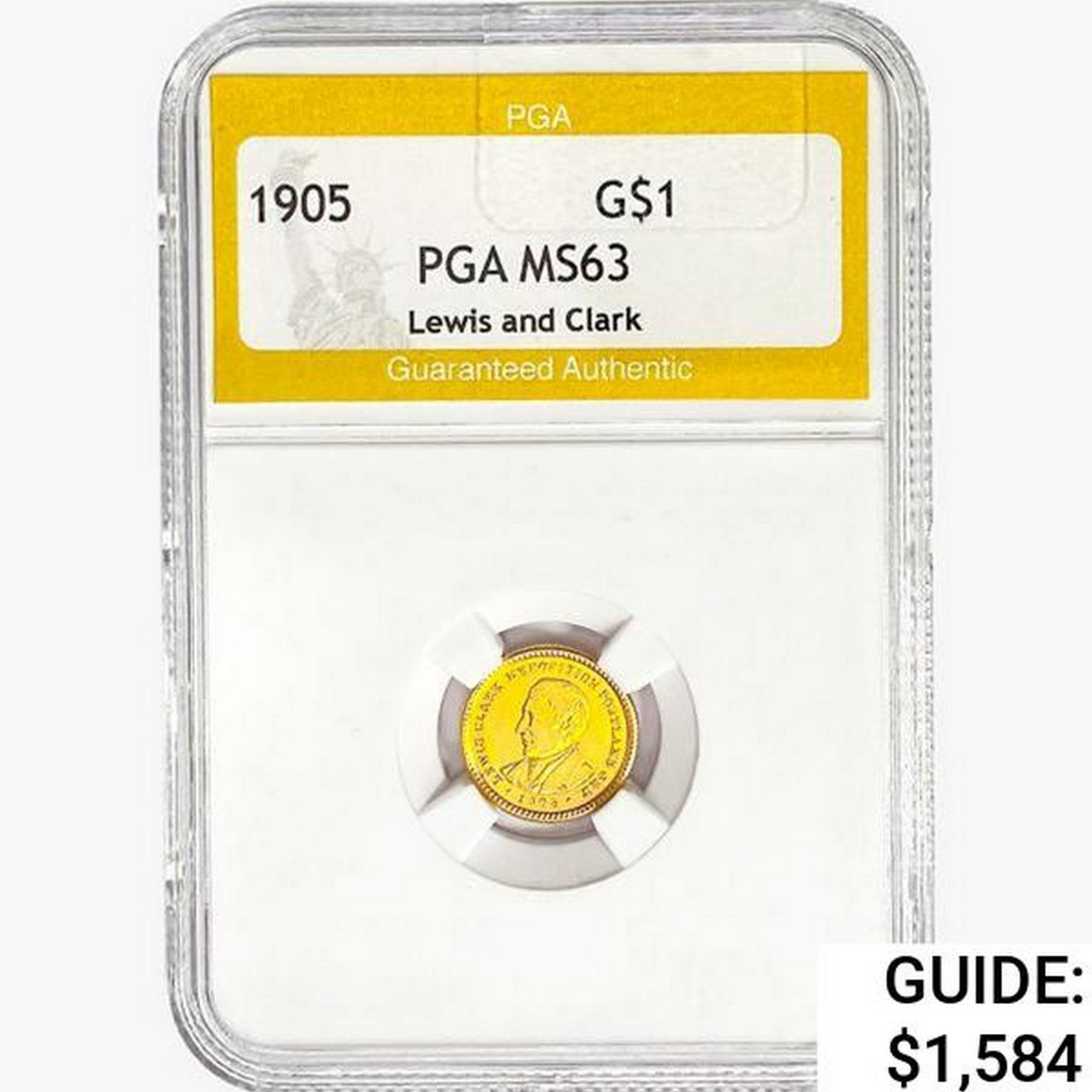 1905 Lewis & Clark Rare Gold Dollar PGA MS63