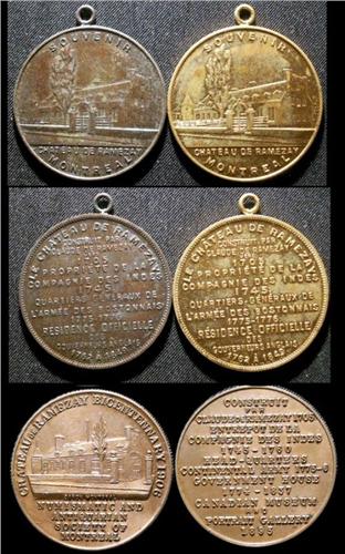 1905, Lot of three Château Ramezay medals ( two with suspension loops) with History detailed on back