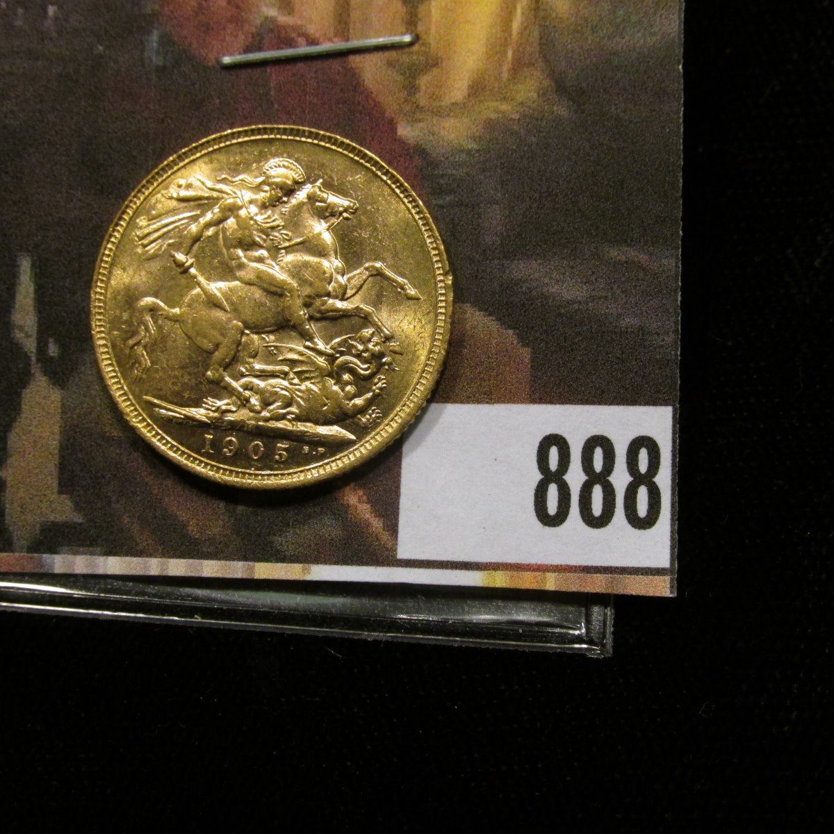1905 M Melbourne, Australia Gold Sovereign, Brilliant Uncirculated.