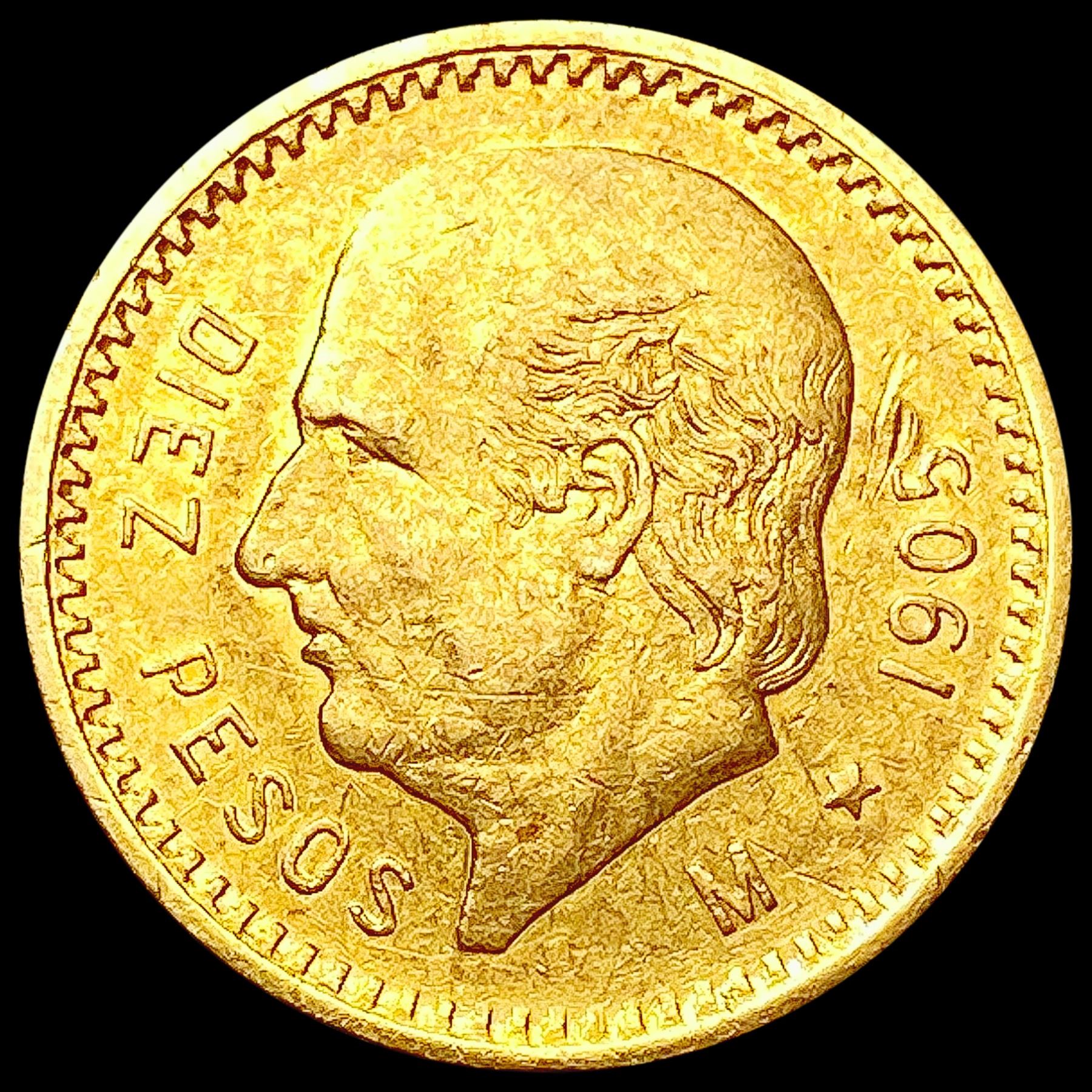 1905 Mexico Gold 10 Pesos 0.2411oz CLOSELY UNCIRCULATED