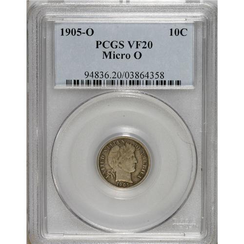 <B>1905-O 10C Micro O VF20 PCGS.</B></I> PCGS Population (0/0). NGC Census: (0/0). (#94836)<BR><BR><b>Shipping:</b> Coins & Currency (<a target="_blank" href="http://www.heritageauctions.com/common/shipping.php">view shipping information</a>)