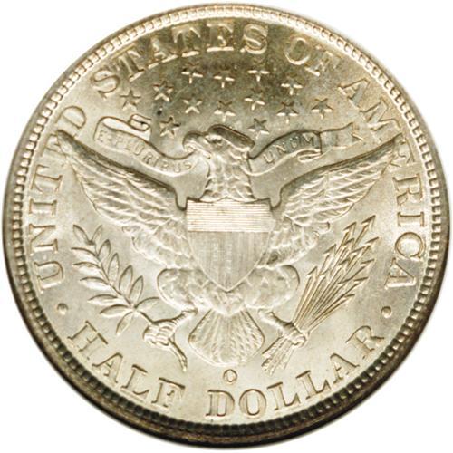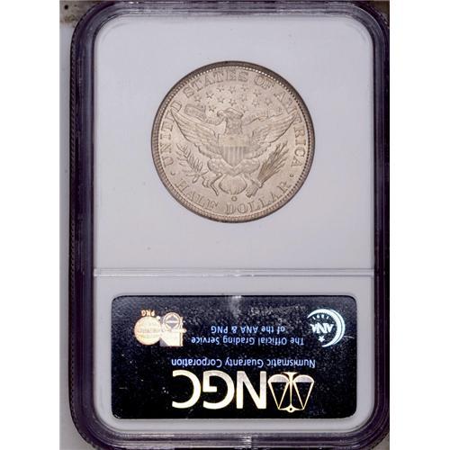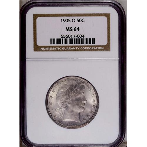 <B>1905-O<50C> MS64 NGC.</B></I> Lightly toned with characteristic O-mint softness at the center of the obverse. The frosty reverse, however, is more sharply defined. This issue's modest mintage of 505,000 is perhaps a bit misleading when it comes to Mint State rarity, but Choice and better survivors could hardly be described as common. Census: 20 in 64, 15 finer (2/06).
