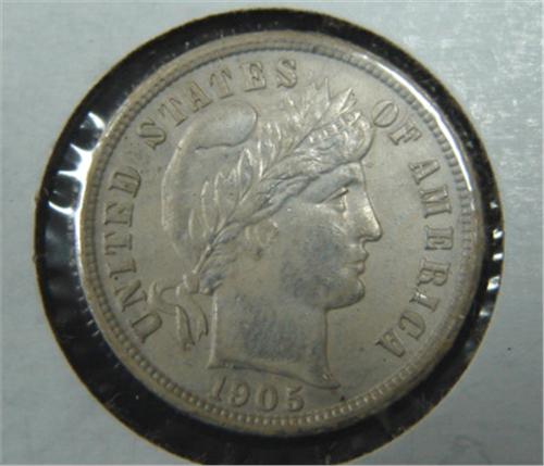 1905-O BARBER DIME. AU.
