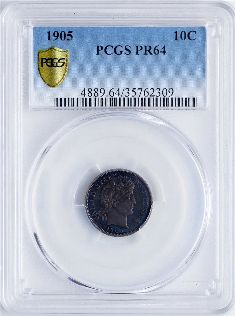 One 1905 Proof Barber Dime Coin PCGS PR64 AMAZING Toning. PCGS Graded.