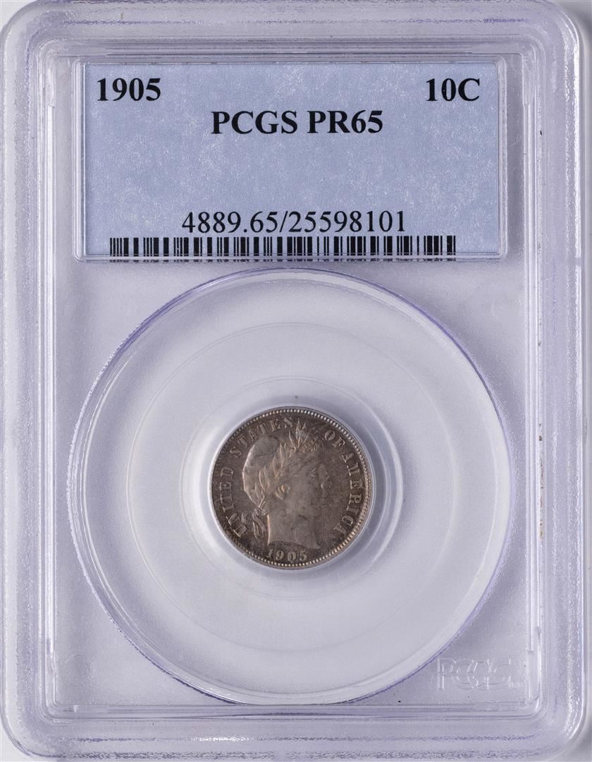 One 1905 Proof Barber Dime Coin PCGS PR65. PCGS Graded.