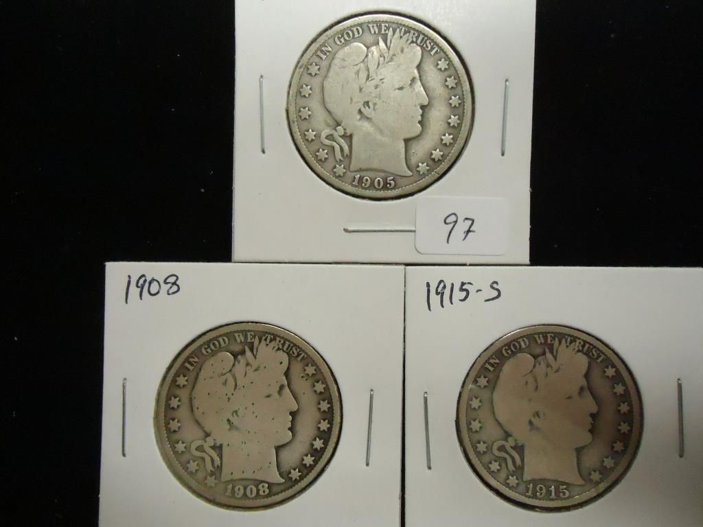 1905-S,08 & 15-S BARBER HALF DOLLARS