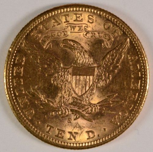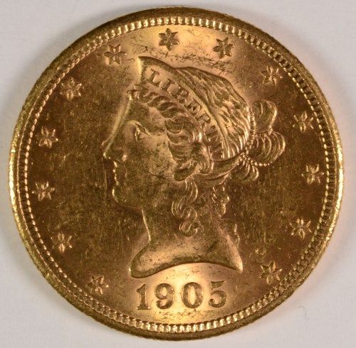 1905-S $10.00 LIBERTY GOLD, MS-63 VERY SCARCE DATE, FROSTY AND NICE!