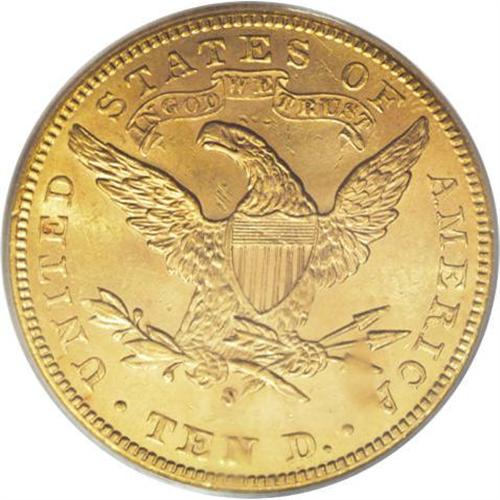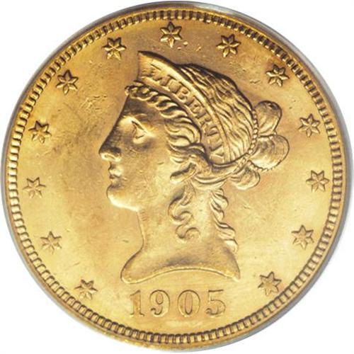 <B>1905-S $10 MS62 PCGS.</B></I> One of the generally unheralded late-date Liberty eagle issues, the 1905-S has proven to be conditionally rare in Select and better grades, and even MS62 pieces are very scarce. This attractive apricot-gold example has vibrant luster and pleasing central detail, though the peripheral zones display slight softness. A blush of rose graces the modestly abraded obverse fields. Population: 22 in 62, 12 finer (2/07).<BR><BR><b>Shipping:</b> Coins & Currency (<a target="_blank" href="http://www.heritageauctions.com/common/shipping.php">view shipping information</a>)