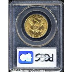 <B>1905-S<$10> MS62 PCGS.</B></I> Effulgent with an attractive orange-peel patina over portions of the obverse and reverse surfaces. Several reeding marks on the cheek keep the coin from a higher grade. <BR><BR><B>Important notice:</B> Heritage usually auctions material at the rate of 200-250 lots per hour. On some occasions eBay Live bid software or the Internet may not be able to keep up with the pace of the auction. We recommend placing a realistic absentee bid now as insurance to avoid disappointment. Occasionally the auctioneer may eliminate or reject an eBay Live bid, and the auctioneer may also reopen a lot after the close of the eBay live bidding (usually because we missed an audience bid), and may reject your bid even if it shows you as the winning bidder. By bidding via eBay Live, you agree that Heritage may award the lot to another bidder at its sole discretion under the circumstances described above or any other reasonable circumstances. Since eBay bids are not shown to us until we open the lot on the floor, we treat those bids just like floor bids. In most cases the floor responds before the eBay bid is presented to us, due to Internet lag time, so for consistency we have made it a policy that floor bids are always considered first over tie eBay live bids. Also please note that all Heritage lots purchased through eBay Live carry a 20% Buyer's Premium. Please make sure you read the Terms and Conditions before you bid. </span></font></tr></table></td></tr></table>