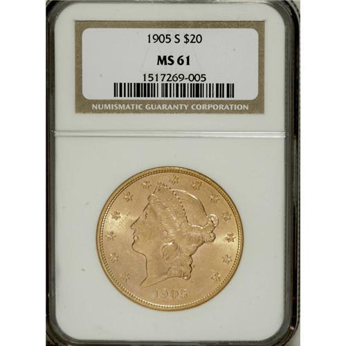 1905-S $20 MS61 NGC. NGC Census: (448/965). PCGS Popul