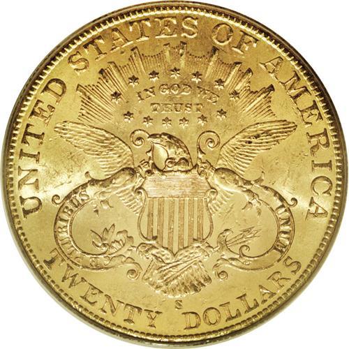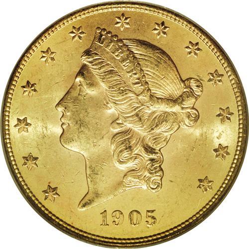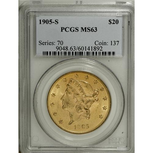 1905-S $20 MS63 PCGS. With over 1,800,000 pieces coine