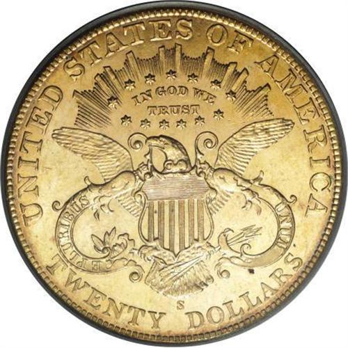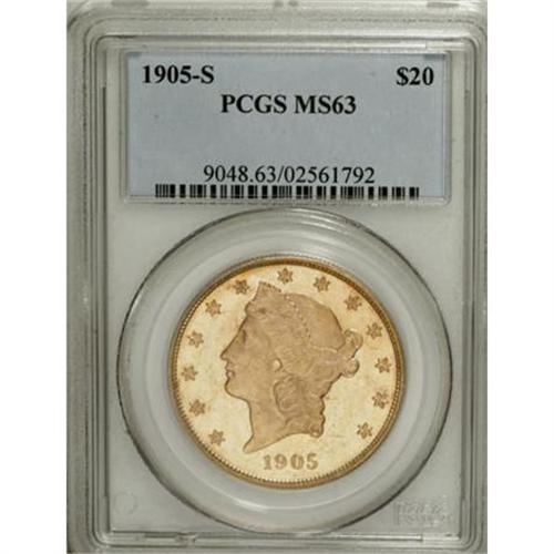 <B>1905-S $20 MS63 PCGS.</B></I> Fully mirrored fields and exquisite cameo contrast suggest a highly appealing example of the date. A few light abrasions are reflected in the fields, doubling their appearance. While current population figures indicate that this piece is far from the finest available, visual appeal is much more important than numbers in a book.<BR><BR><B>Coin Engraver:</B> James B. Longacre<BR><BR><b>Shipping:</b> Coins & Currency (<a target="_blank" href="http://www.heritageauctions.com/common/shipping.php">view shipping information</a>)