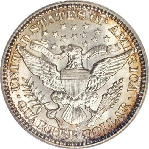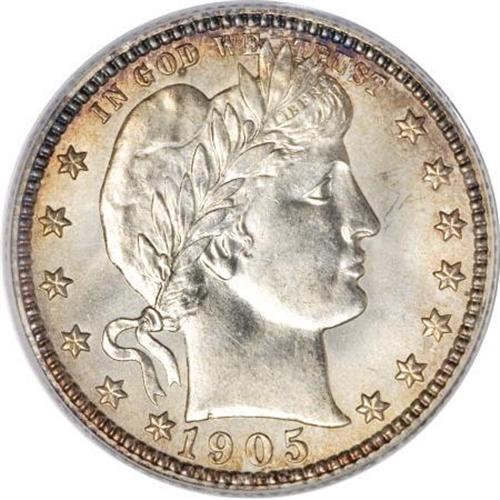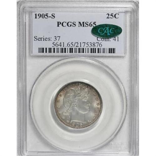 <B>1905-S 25C MS65 PCGS. CAC.</B></I> The flashy silver centers complement deep, rich amber-gold peripheral toning on each side. The obverse strike is bold, but light reverse roller marks appear on the reverse in the usual places--the right shield corner and the right (facing) wing. PCGS has certified only nine MS65 pieces, with seven finer (1/08), but even more importantly, this piece has the kind of eye appeal that many specimens of this issue lack.<BR><I>From The Southwest Collection.</B></I><BR><BR><B>Coin Engraver:</B> Charles E. Barber<BR><BR><b>Shipping:</b> Coins & Currency (<a target="_blank" href="http://www.heritageauctions.com/common/shipping.php">view shipping information</a>)