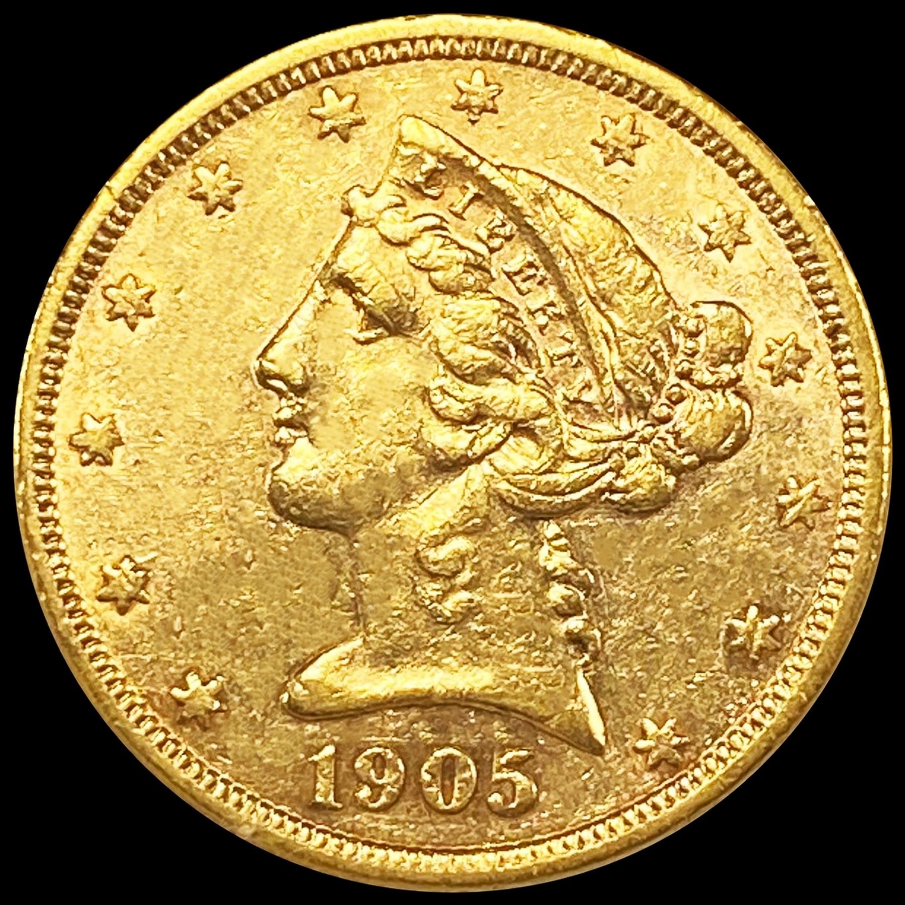 1905-S $5 Gold Half Eagle CLOSELY UNCIRCULATED