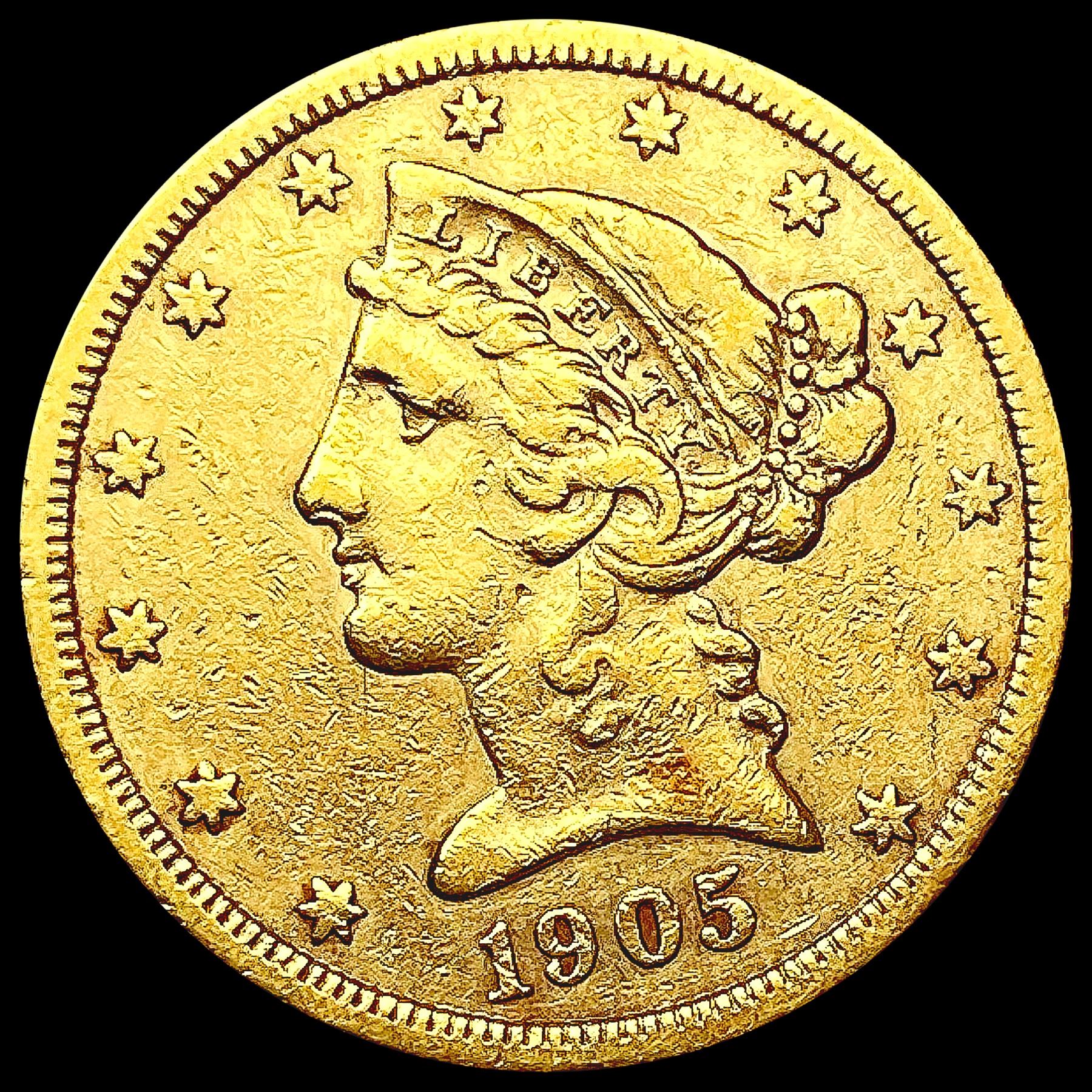 1905-S $5 Gold Half Eagle CLOSELY UNCIRCULATED