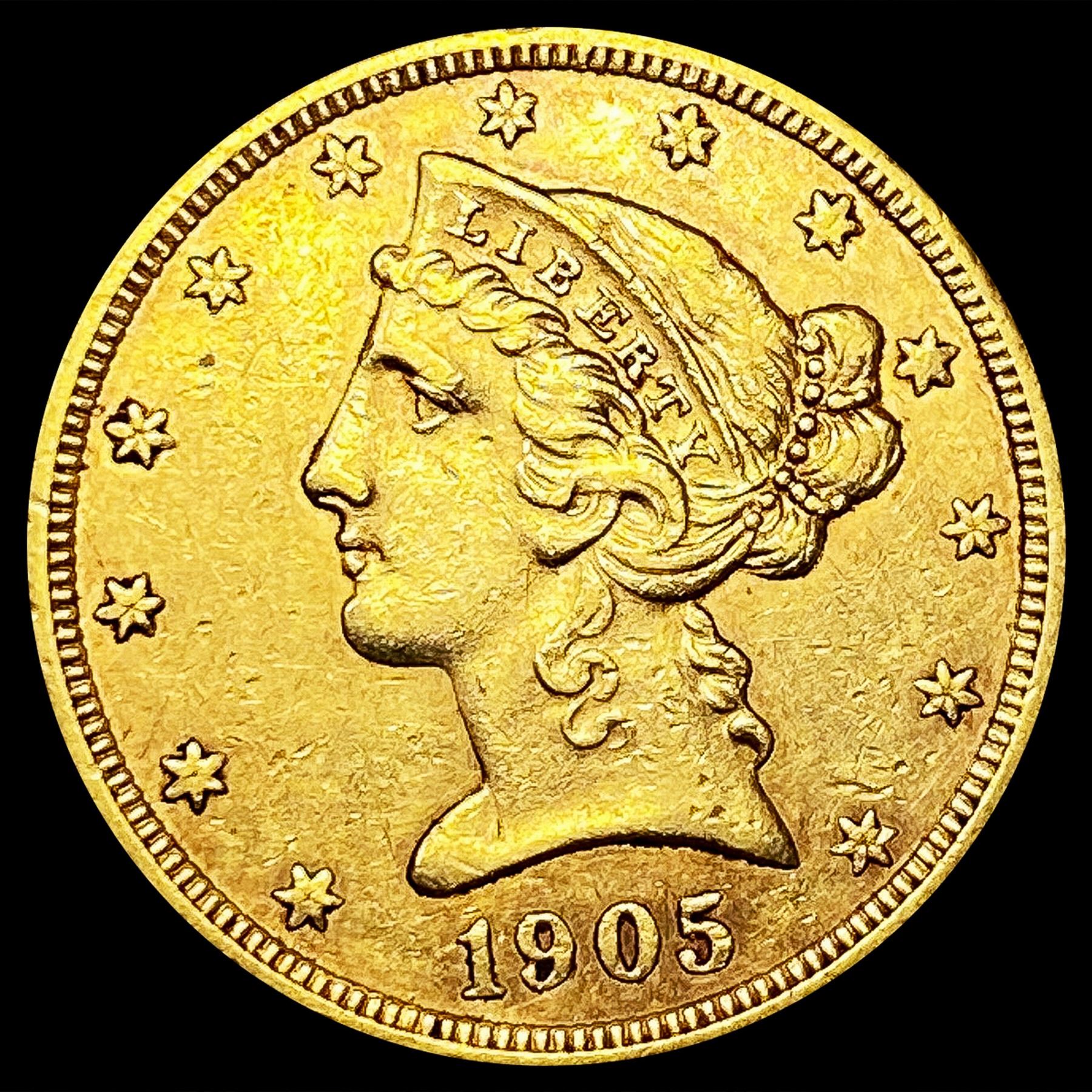 1905-S $5 Gold Half Eagle LIGHTLY CIRCULATED