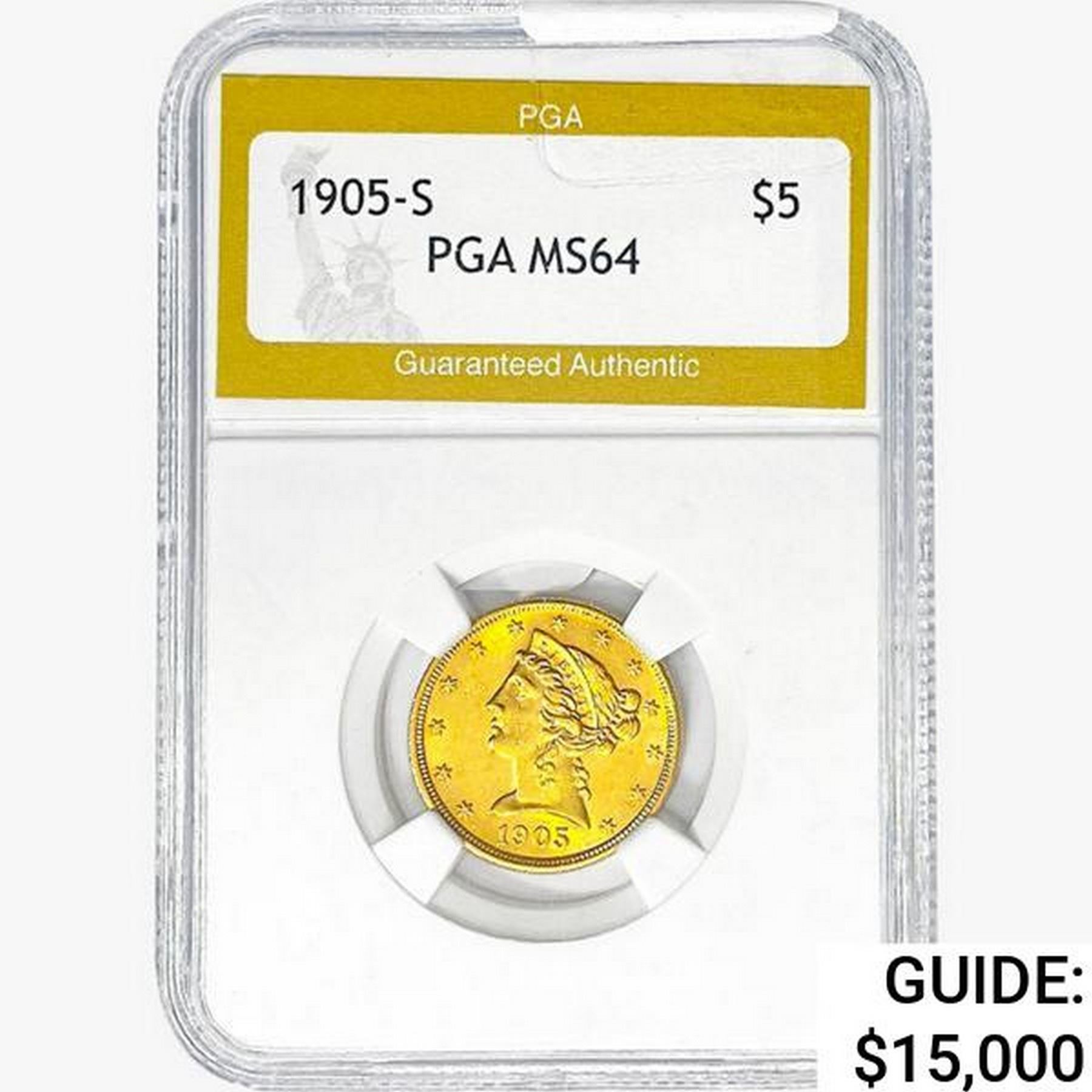 1905-S $5 Gold Half Eagle PGA MS64