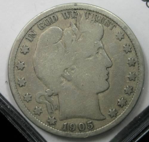 1905-S BARBER HALF-DOLLAR COIN. VG-8.