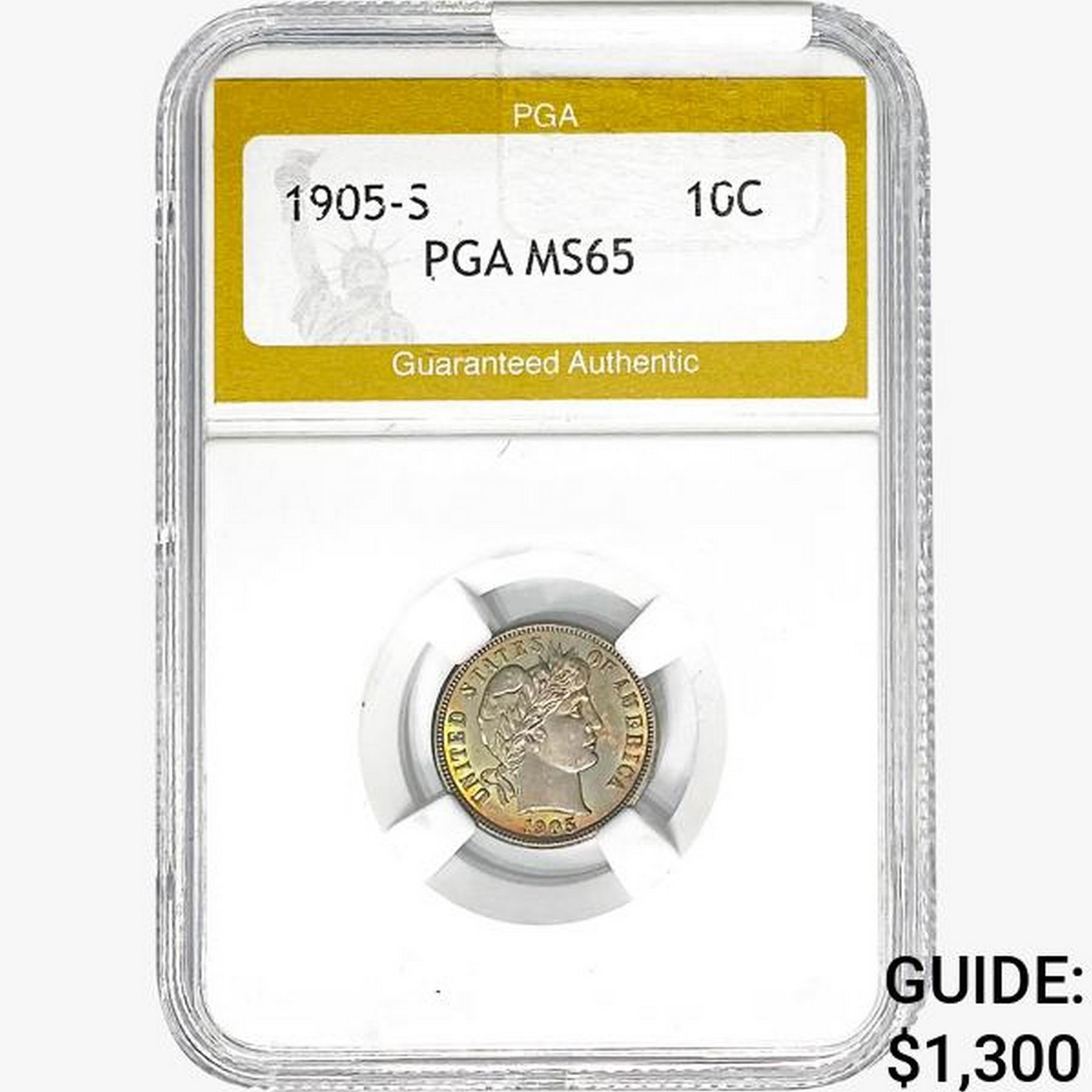 1905-S Barber Dime PGA MS65