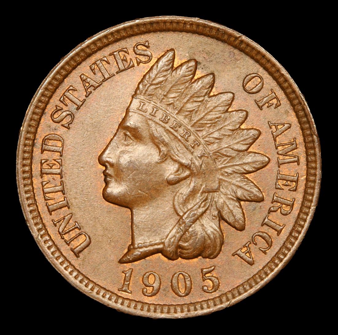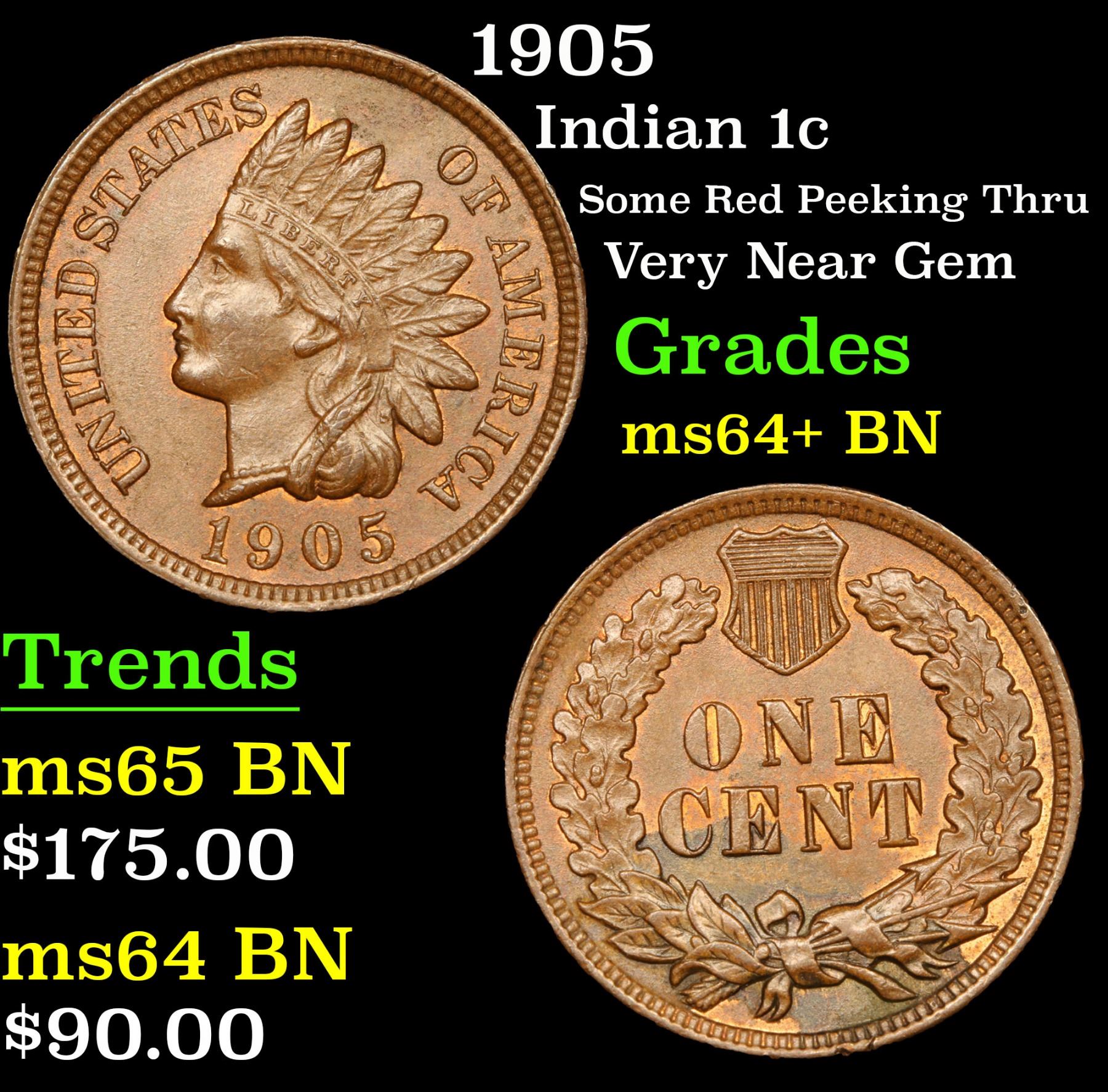 1905 Some Red Peeking Thru Very Near Gem Indian Cent 1c Grades Choice+ Unc BN.